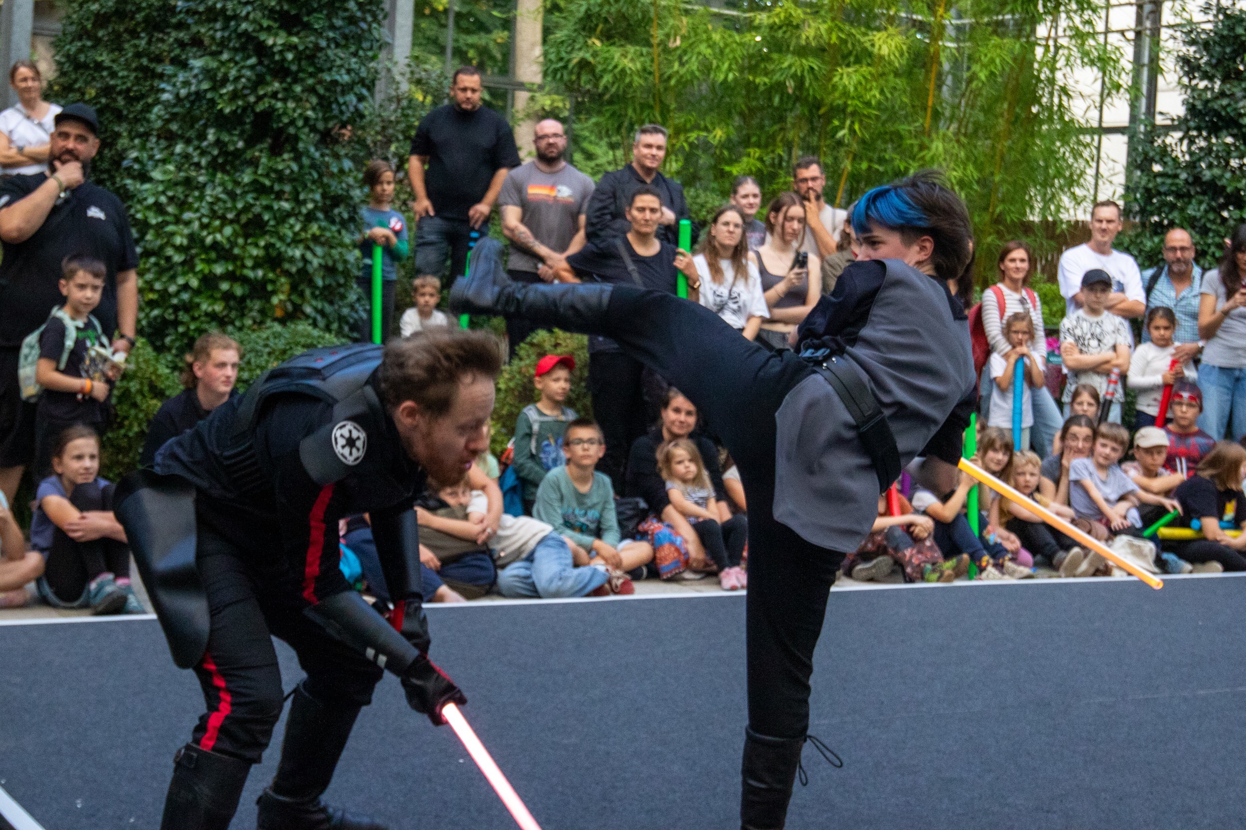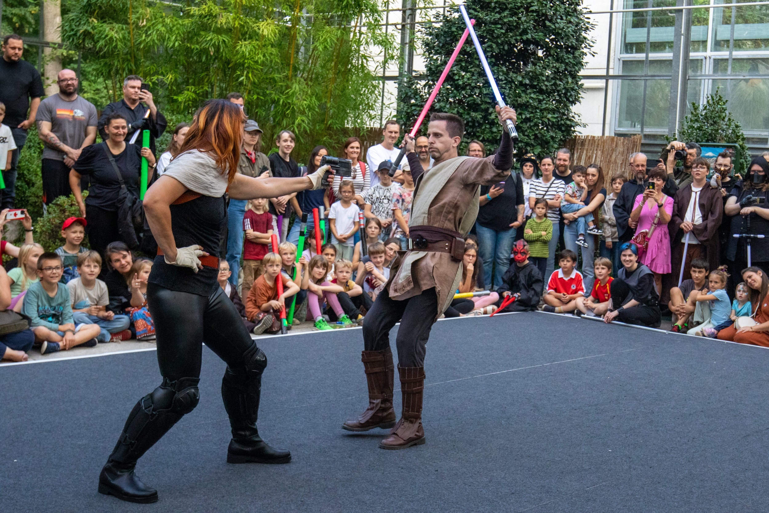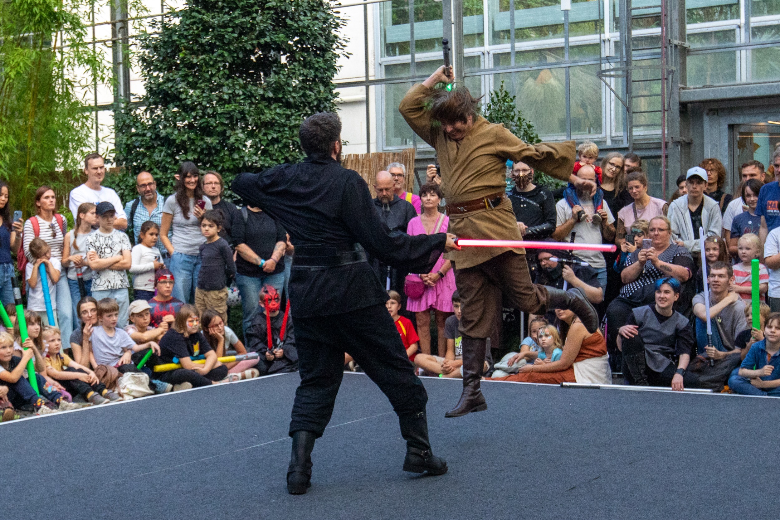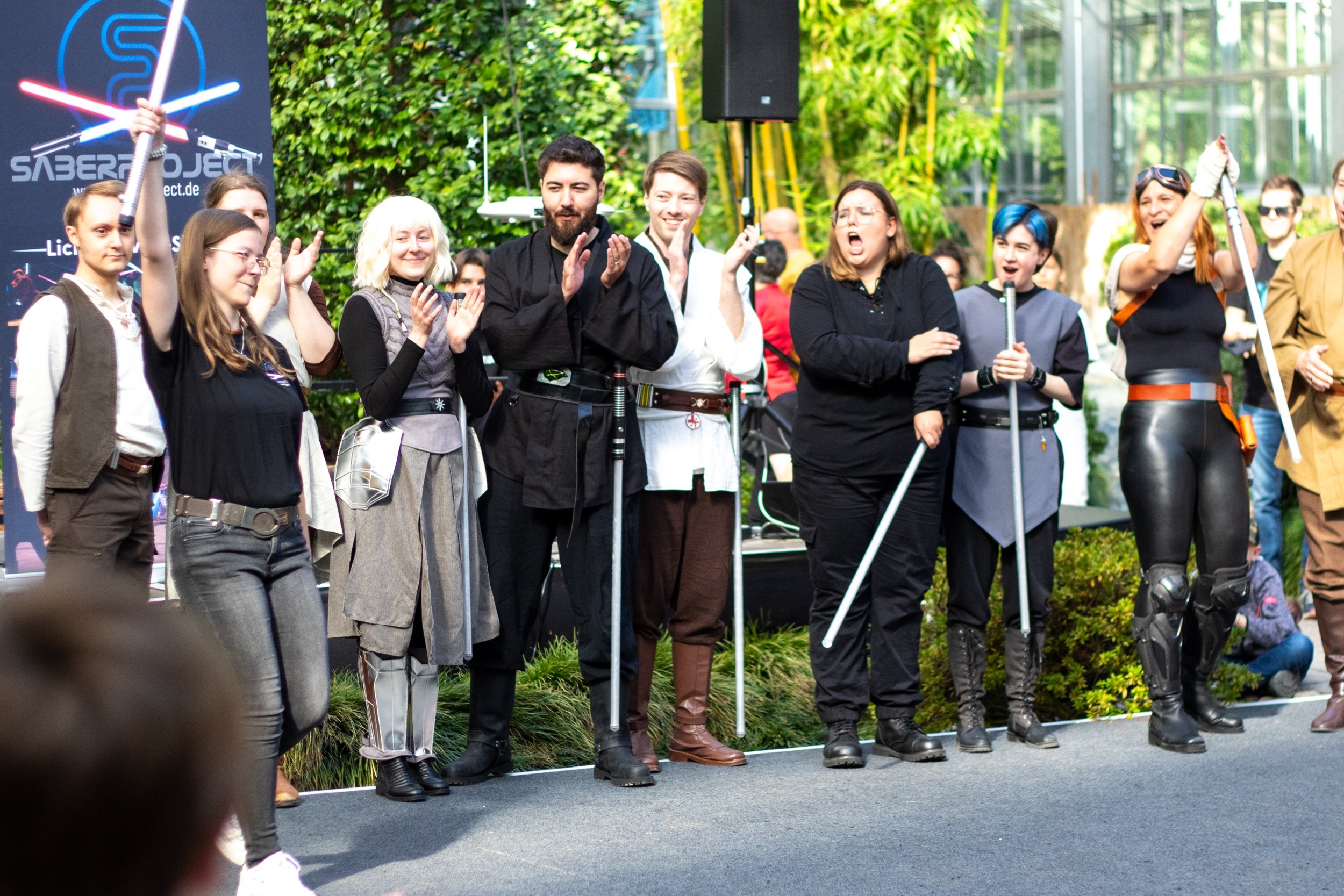 Natürlich haben wir das Team der botanika bei dem beliebten Lichtschwertbasteln unterstützt und konnten dazu beitragen, dass mehrere Dutzend Kids (und dazugehörige Erwachsene) stolz mit ihren selbstgebastelten Lichtschwertern über die Veranstaltung tobten und natürlich sich auch auf der Eventfläche ausprobieren konnten.