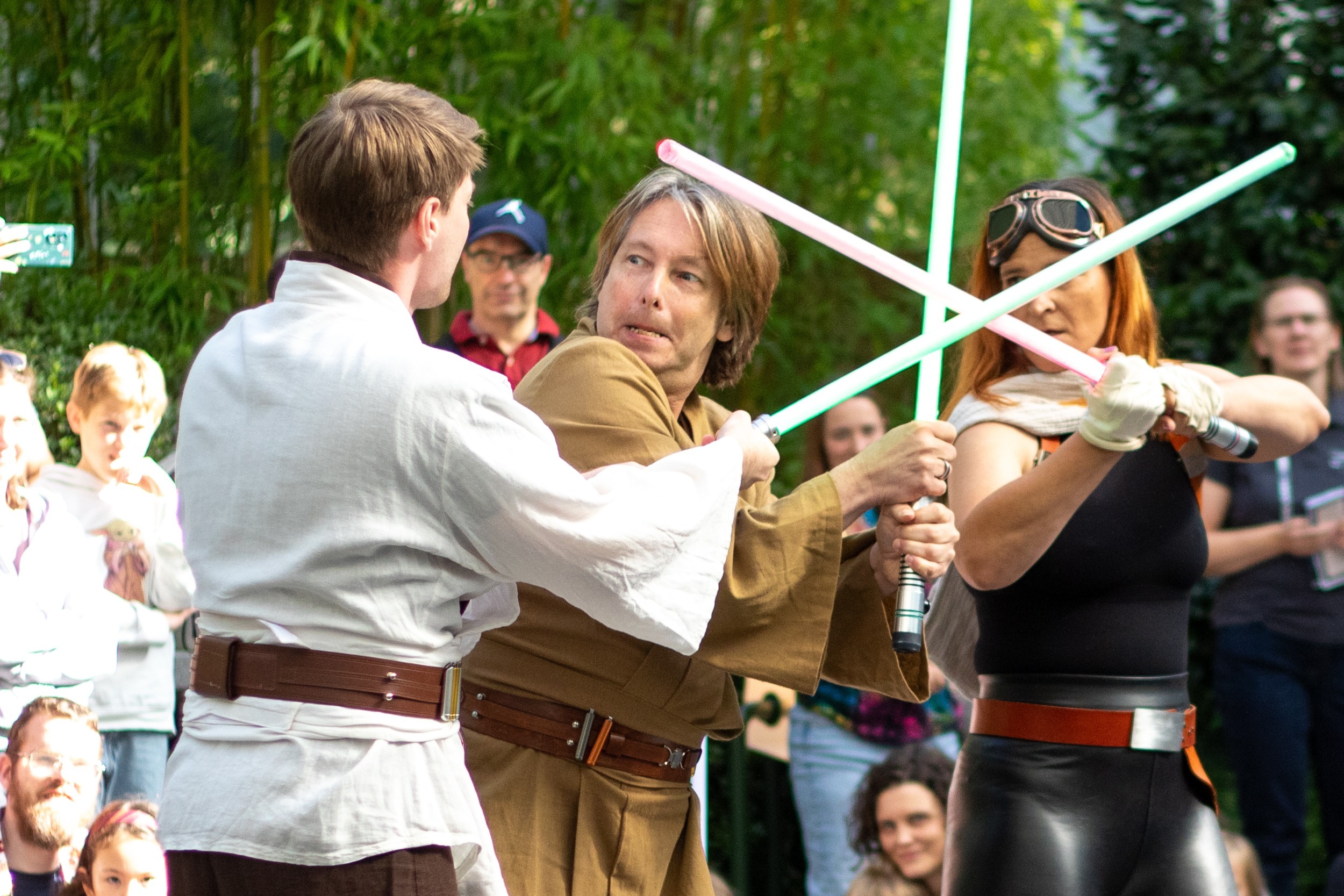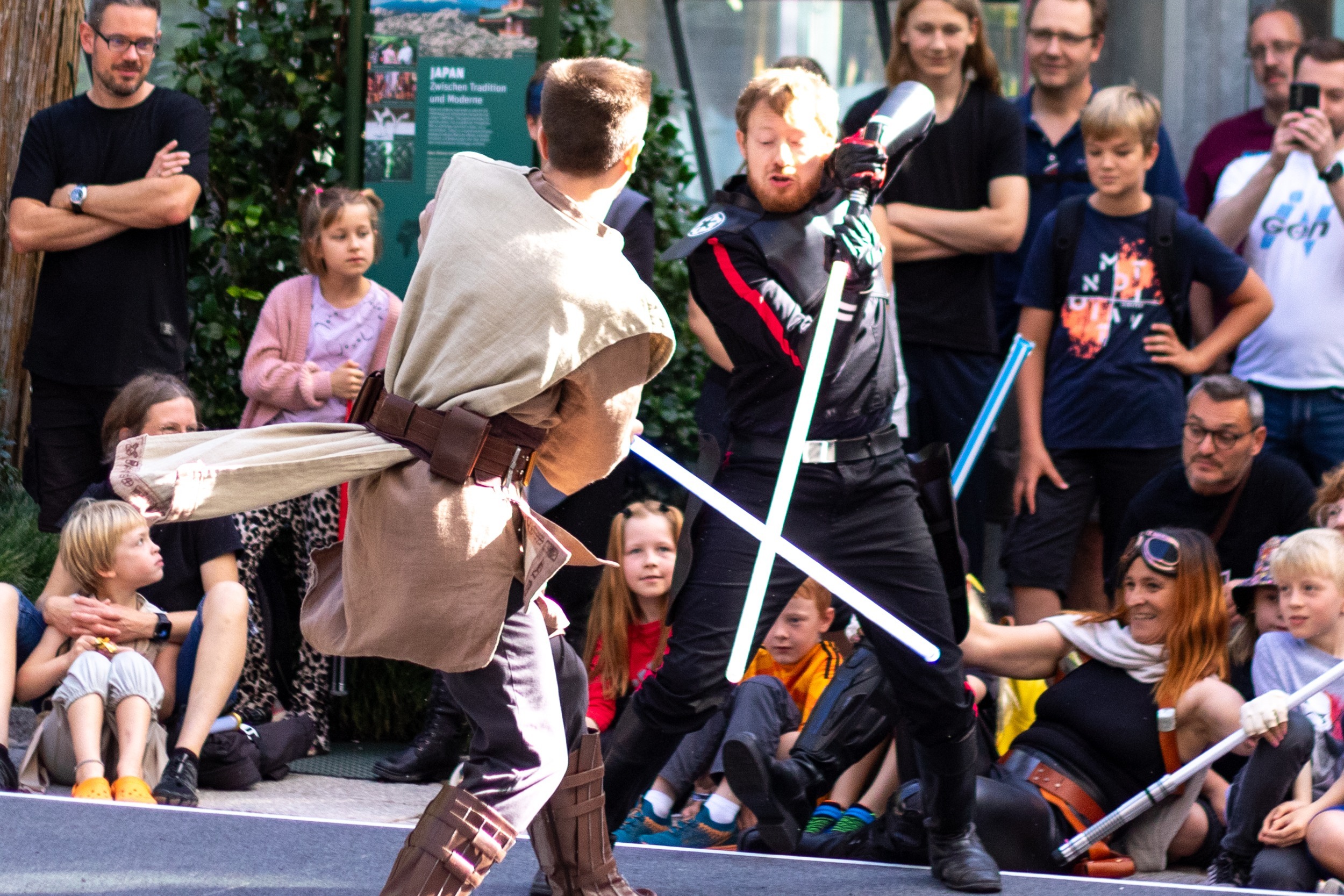 Am 06. und 07. September waren wir wieder zu Gast in der botanika Bremen – ein Ort, der sich für uns jedes Jahr ein bisschen mehr wie ein zweites Wohnzimmer anfühlt. Zwischen dem exotischen Ambiente des Japanischen Gartens, den einzelnen Gewächs- und Tierhäusern (Die Otter sind super!) und den liebevoll gestalteten Räumen bot sich erneut die perfekte Kulisse für unsere kleine Lichtschwertshow, die wir jedes Jahr auch ein bisschen als Generalprobe und Training für Speyer nutzen.