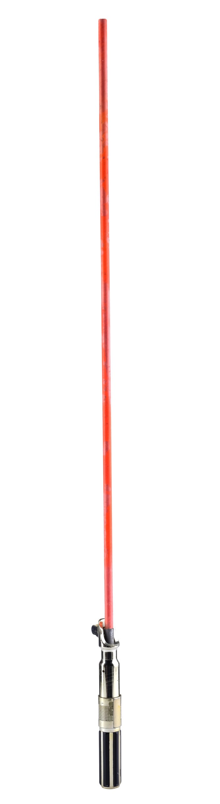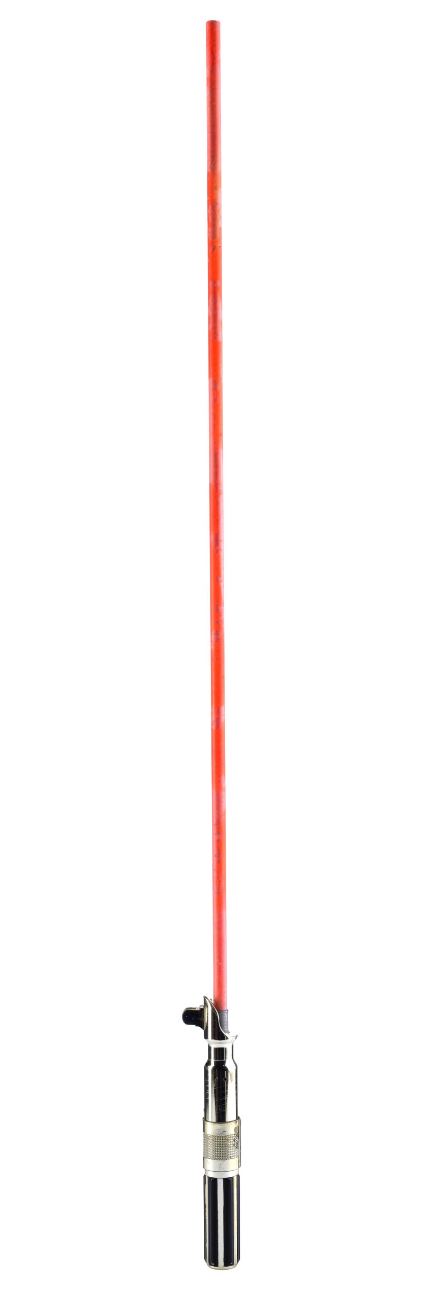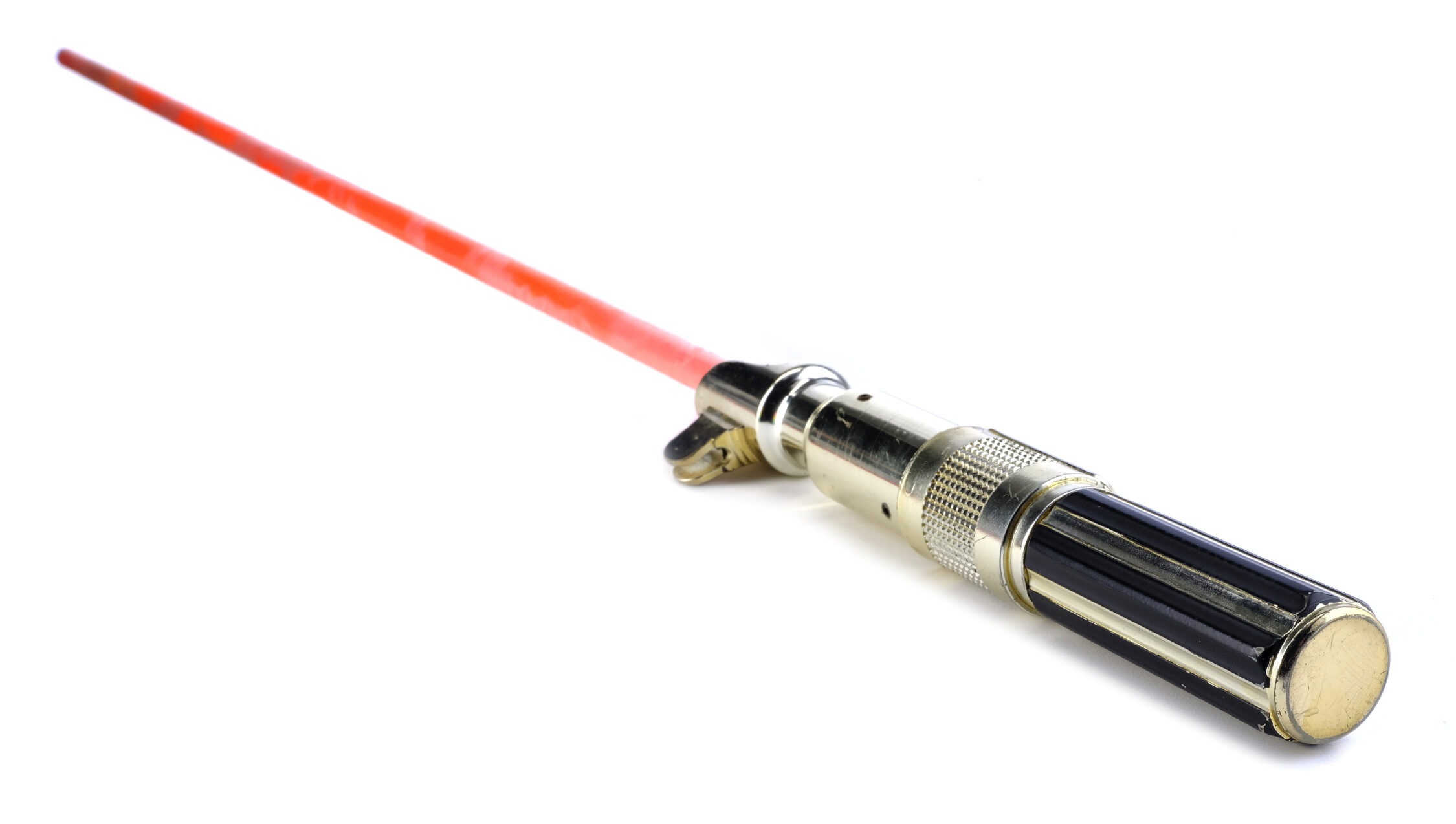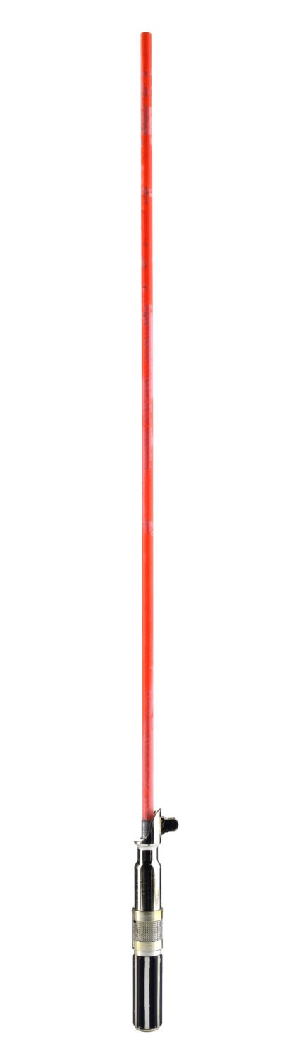 Anakin Skywalker’s (Hayden Christensen) bladed duelling lightsaber from George Lucas‘ Star Wars: Revenge of the Sith. After his first lightsaber was destroyed during the Battle of Geonosis in Star Wars: Attack of the Clones, Anakin wielded his newly-built lightsaber throughout the film, including during his climactic duel with Obi-Wan Kenobi (Ewan McGregor) on the fiery surface of Mustafar.