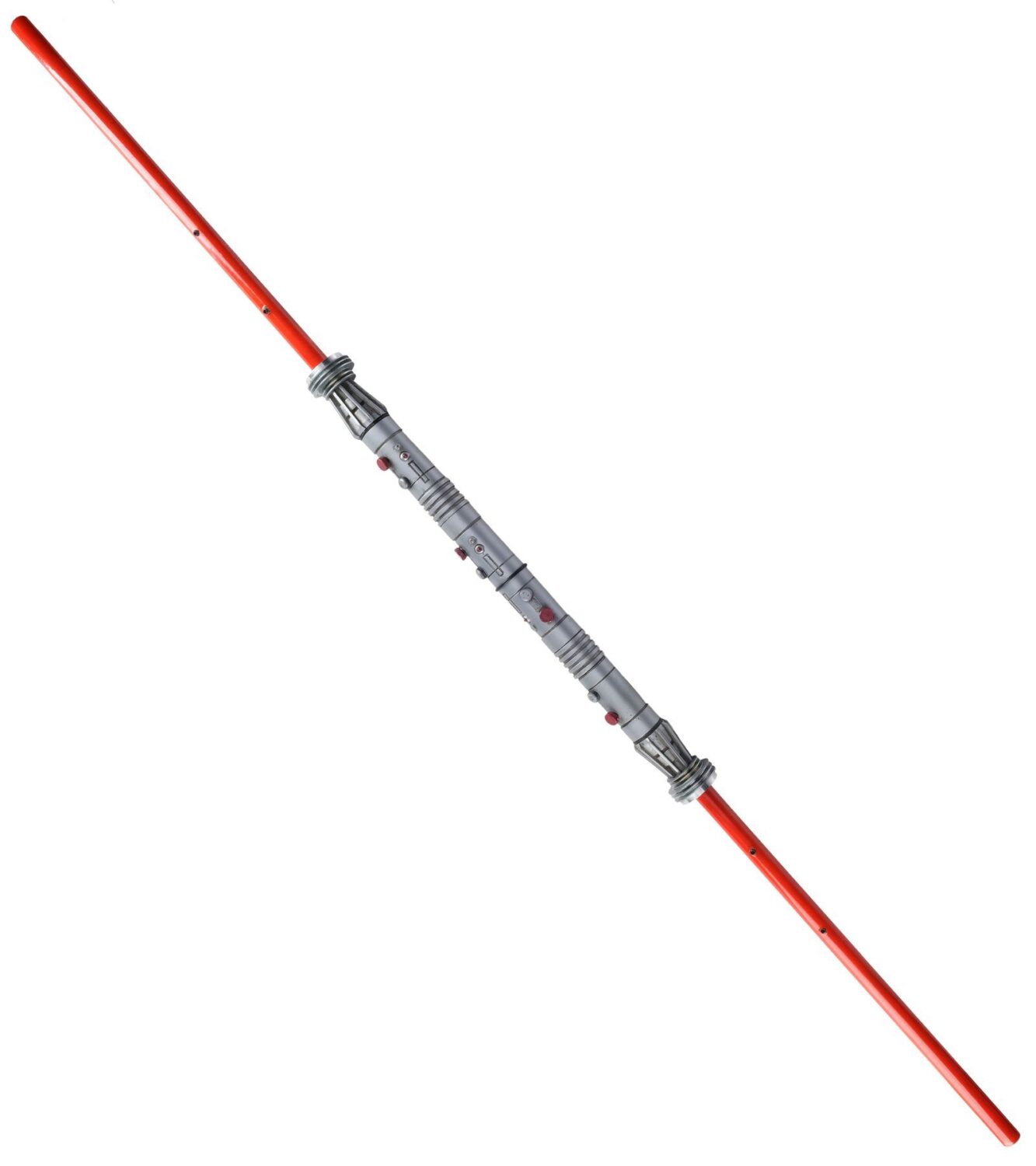 Darth Maul was skilled in the ways of the dark side, creating his own saberstaff as his signature weapon. Although the double-bladed lightsaber was first seen on screen in The Phantom Menace, it originated in the comic book series Star Wars: Tales of the Jedi. Though originally designed to be shorter, Park personally requested a lengthier saber to help him perform the acrobatic spins and dueling flourishes for which the Dathomirian Zabrak is today known.