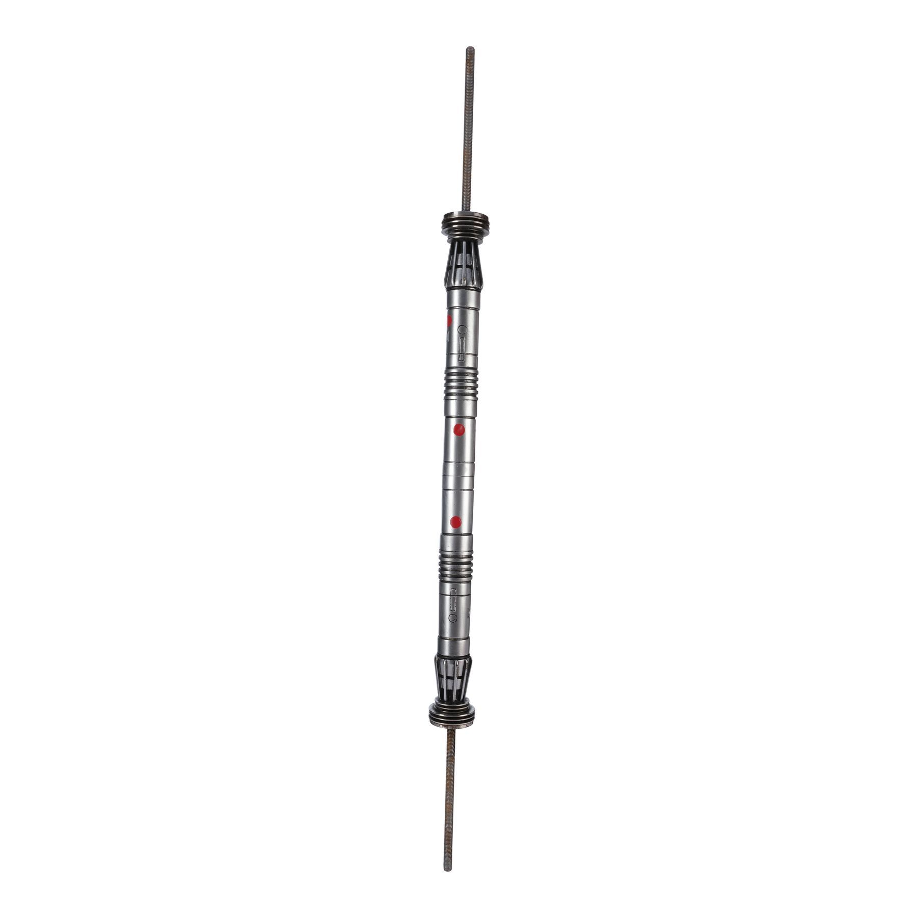 Darth Maul’s (Ray Park) short-bladed lightsaber from George Lucas‘ Star Wars: The Phantom Menace. Sith Lord Darth Maul wielded his signature double-bladed lightsaber during the climactic fight against Qui-Gon Jinn (Liam Neeson) and Obi-Wan Kenobi (Ewan McGregor) in Theed Palace on Naboo.