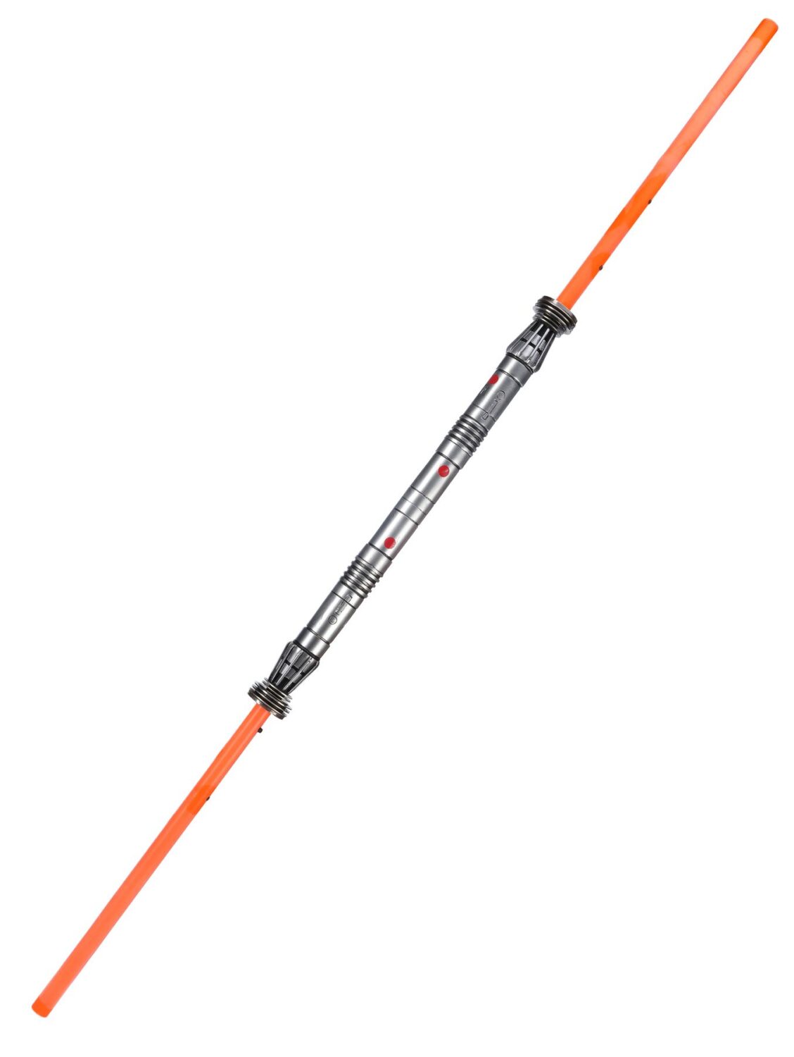 Darth Maul was skilled in the ways of the dark side, creating his double-bladed saberstaff as his signature weapon. Although his lightsaber was first seen on screen in The Phantom Menace, it originated in the comic-book series Star Wars: Tales of the Jedi. Short-bladed weapons were created for the filming of action sequences, for which full length blades were too cumbersome.