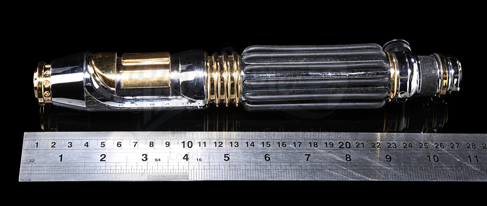 Dieses Lichtschwert ist ein original genutztes Prop aus dem Film und wurde auf Propstore.com versteigert. Wir verwenden den originalen Text der Auktion und Bilder mit freundlicher Genehmigung von propstore.com.
