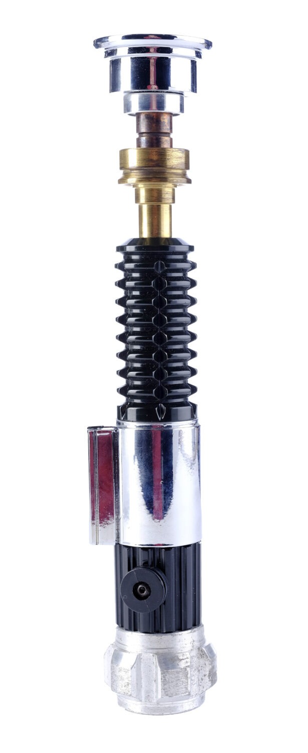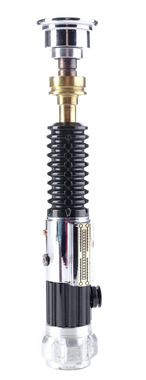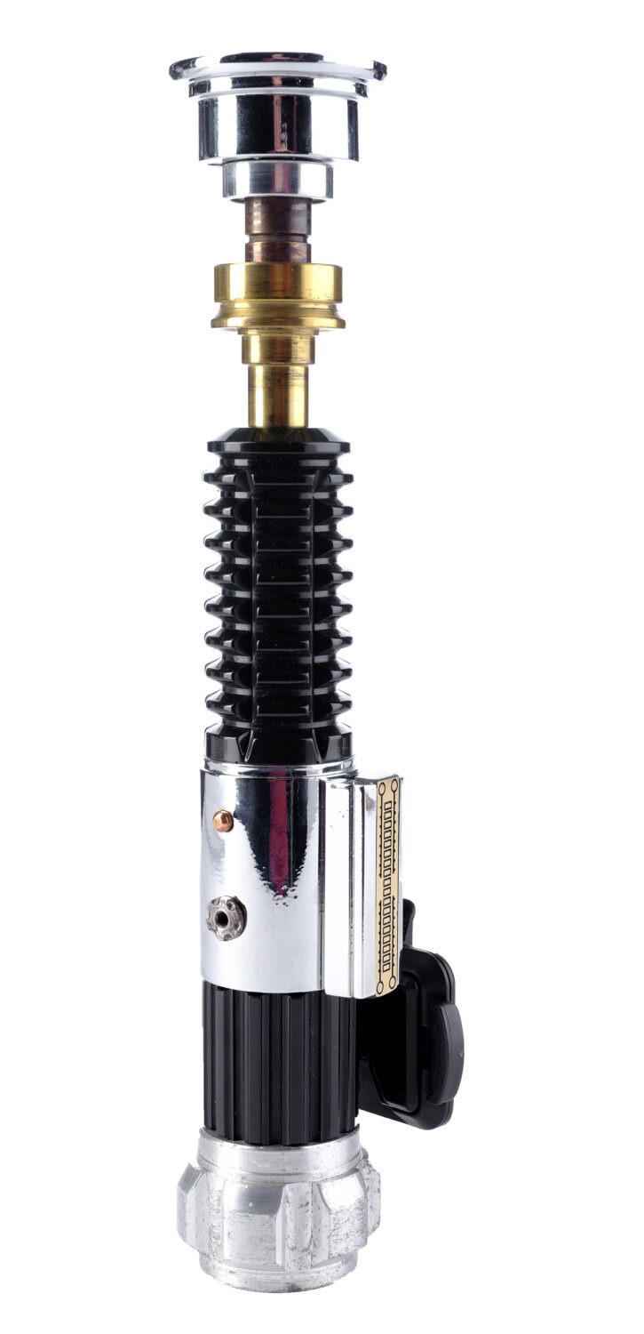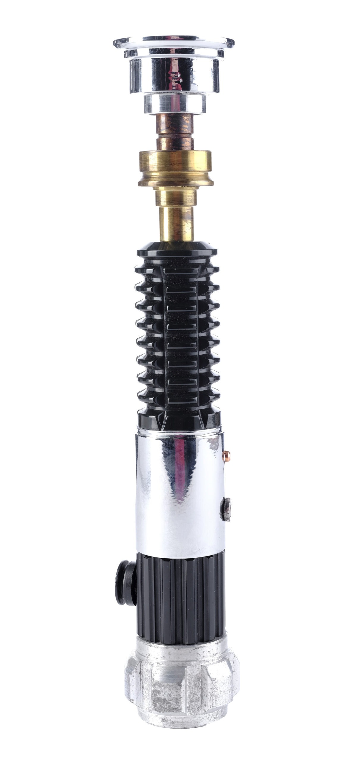 This hilt was specifically constructed for the third prequel film and is a different design to the lightsaber wielded by Obi-Wan in the prior two Star Wars episodes. Like Anakin Skywalker’s lightsaber, this lightsaber design links directly to Star Wars: A New Hope, where Alec Guinness appeared with a similar prop as the older Kenobi. It is therefore one of the most iconic lightsaber designs in the Star Wars saga.