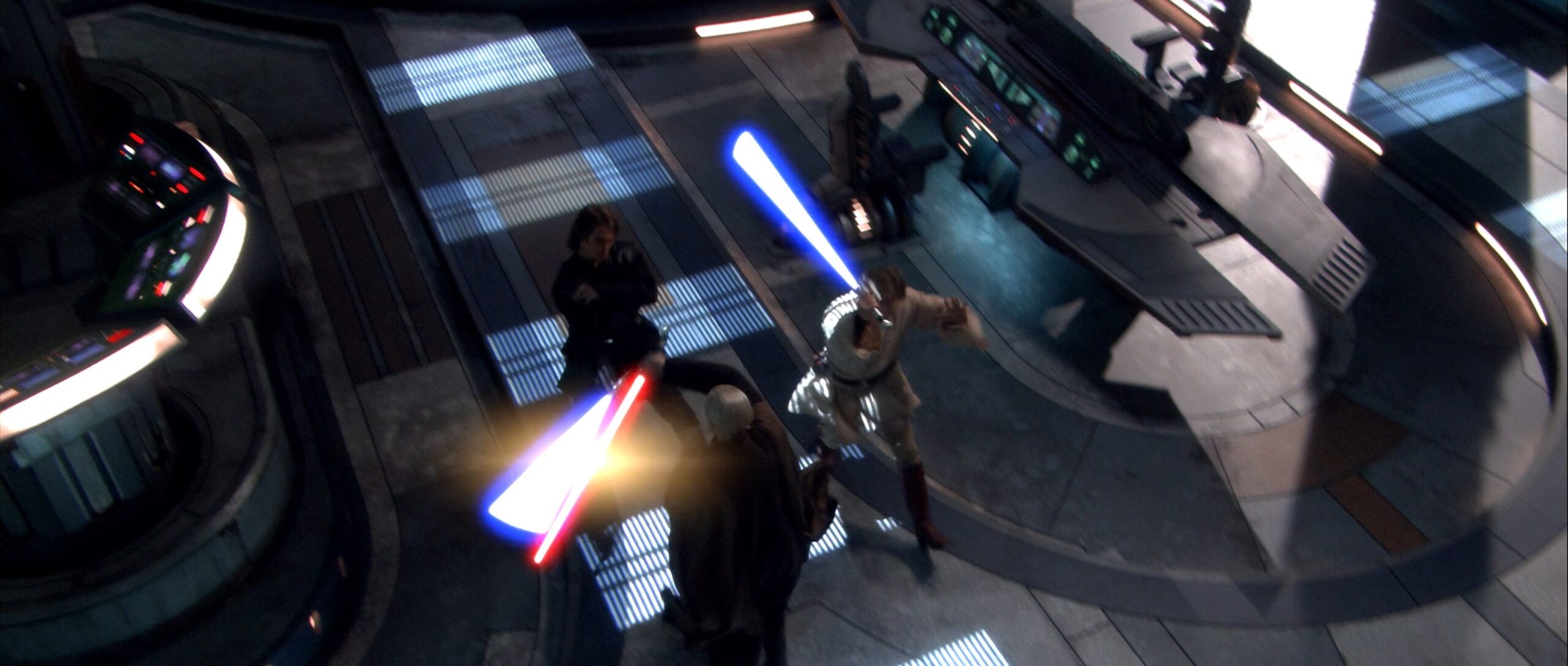 Das Lichtschwertdesign unterscheidet sich nur in einem Detail am Pommel zu dem aus AOTC. Der Pommel in ROTS ist verchromt im Gegensatz zur matten Variante aus dem vorherigen Film.