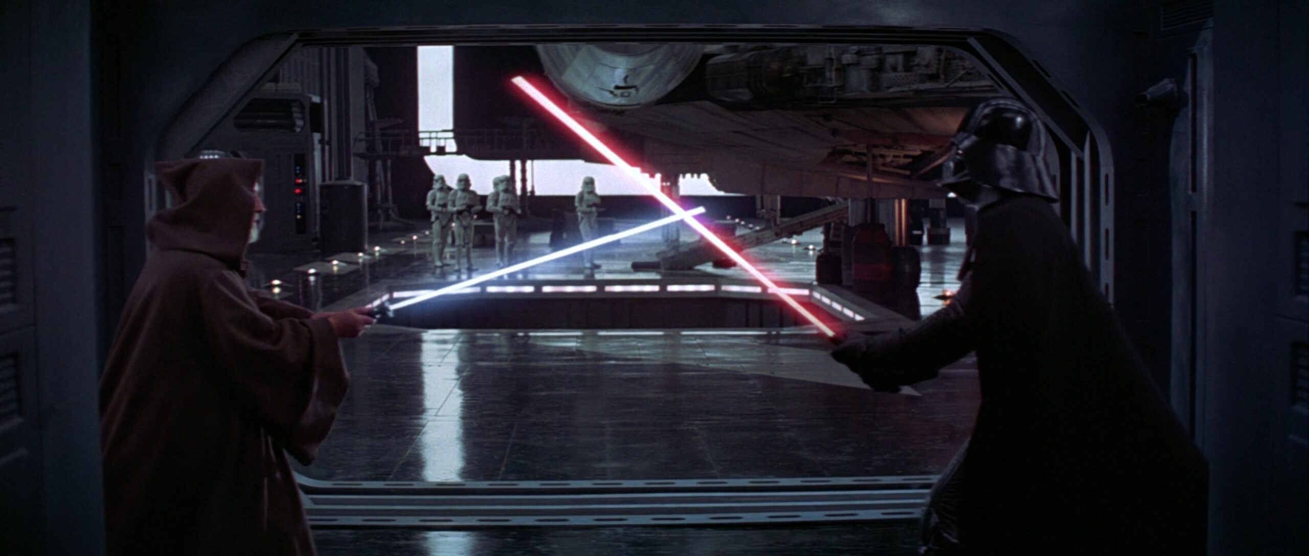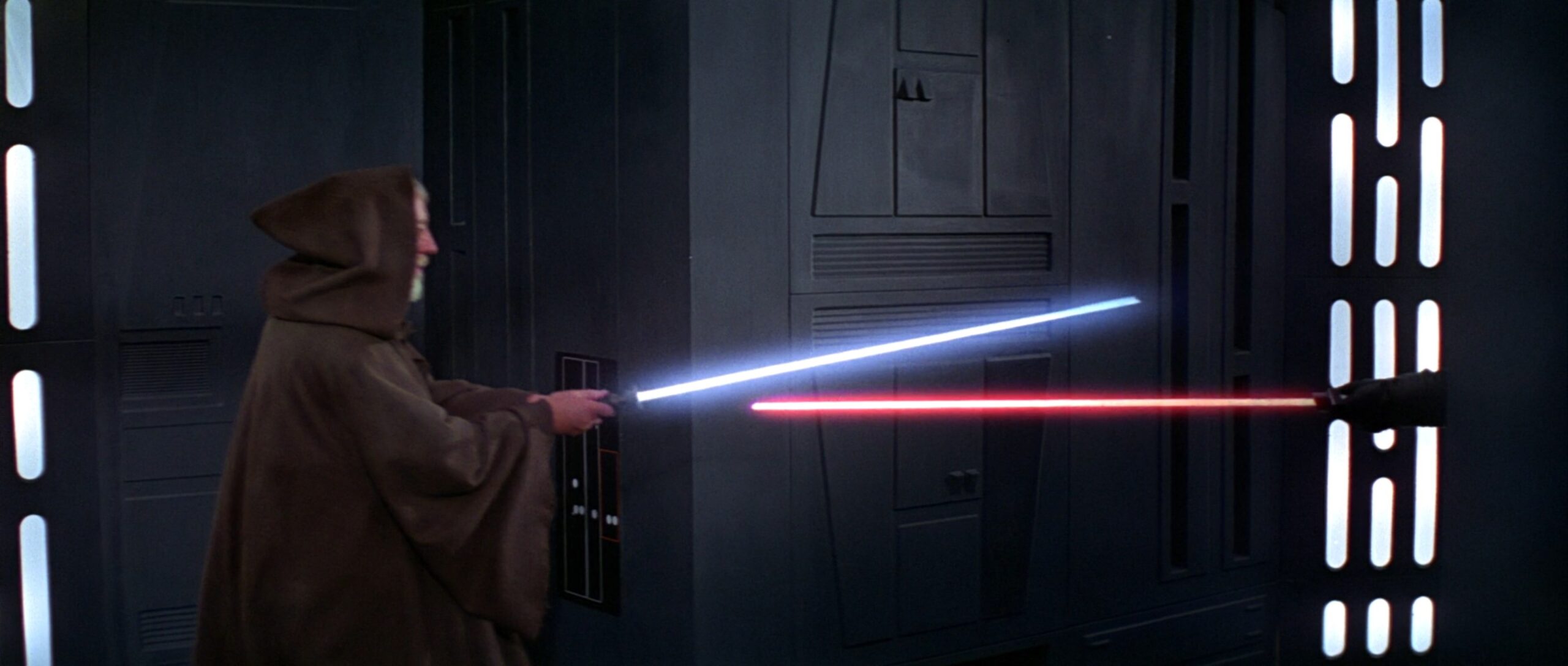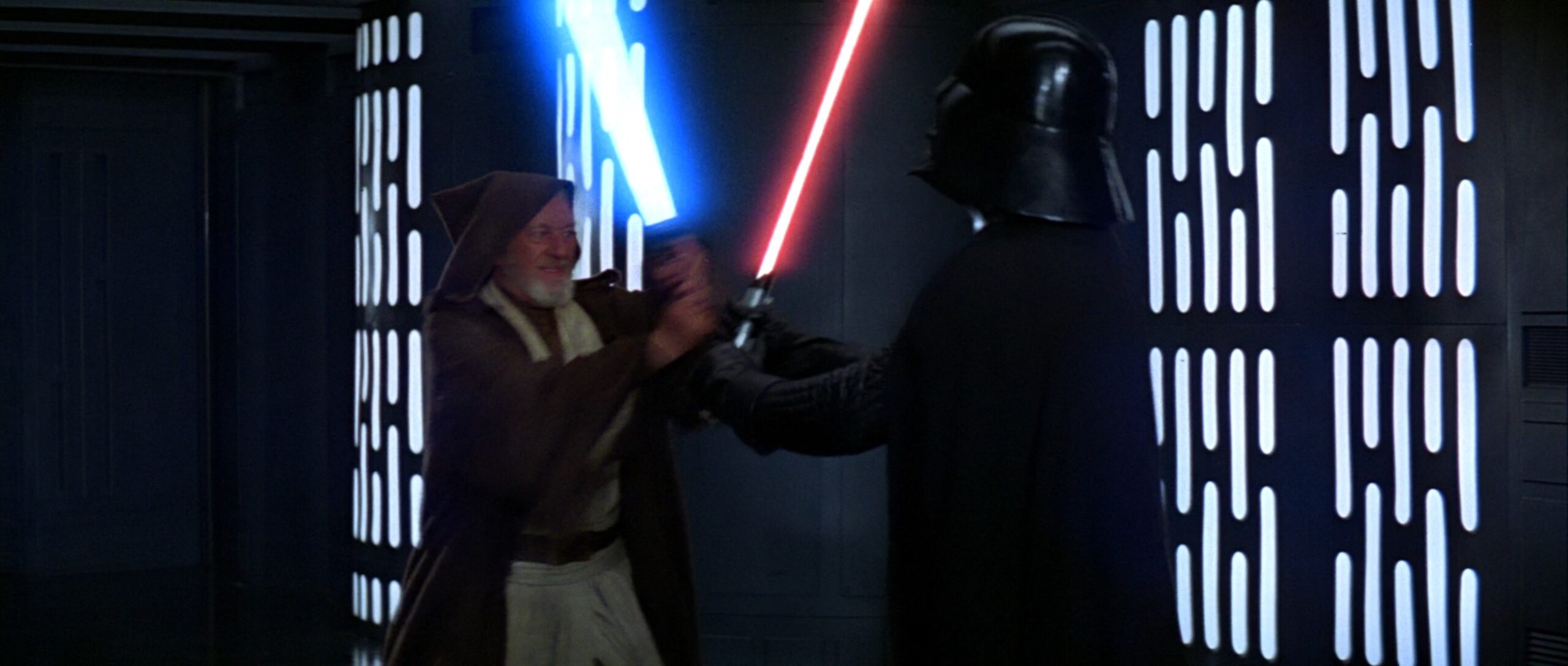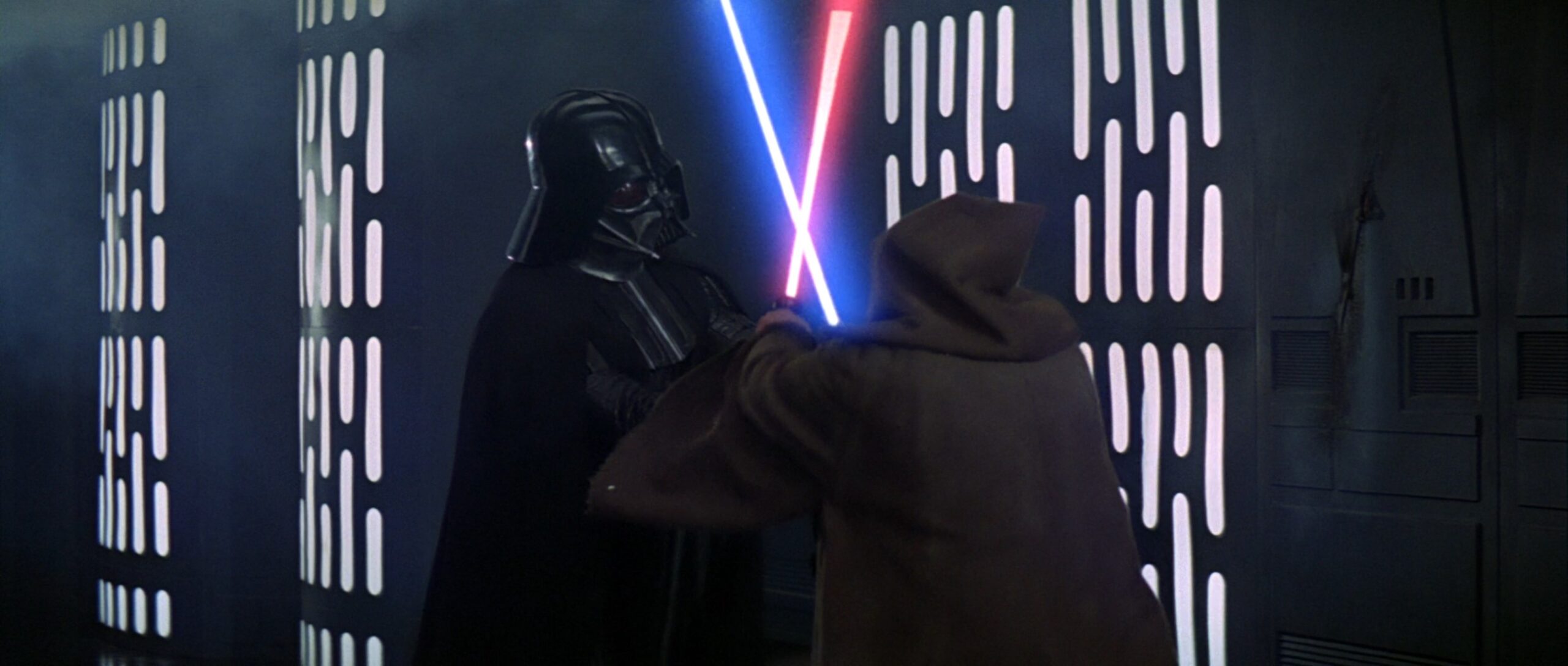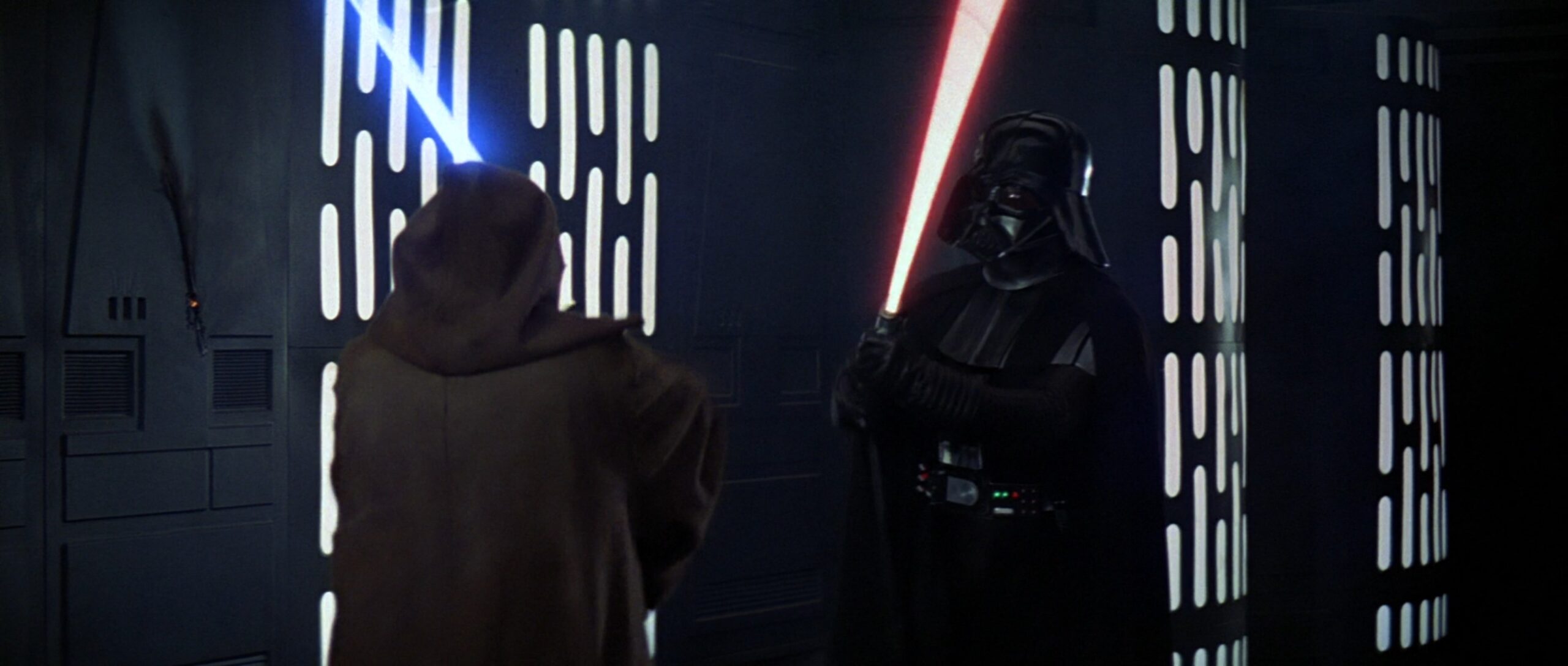 Darth Vaders Lichtschwert-Design aus Episode 4 wurde vom Dunklen Lord der Sith im Duell mit seinem ehemaligen Meister Obi-Wan Kenobi im Duell auf dem ersten Todesstern genutzt.