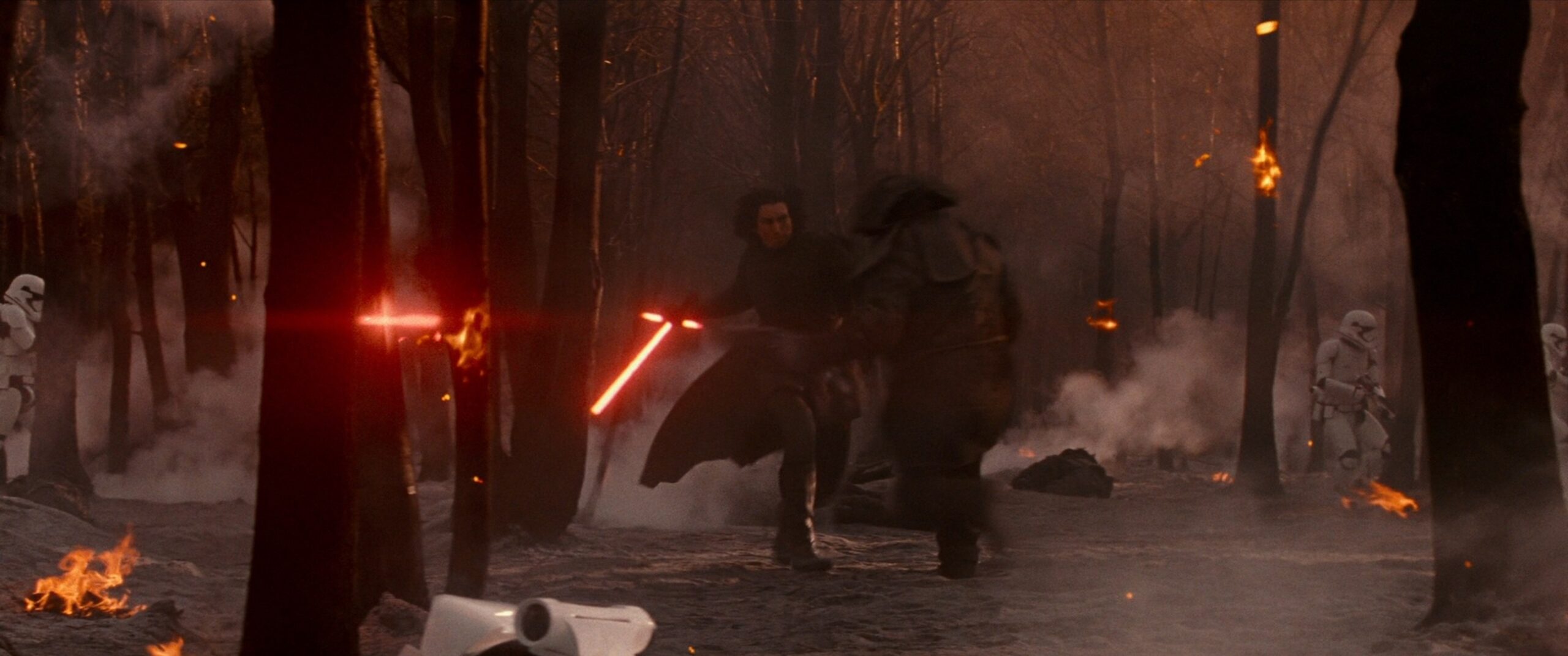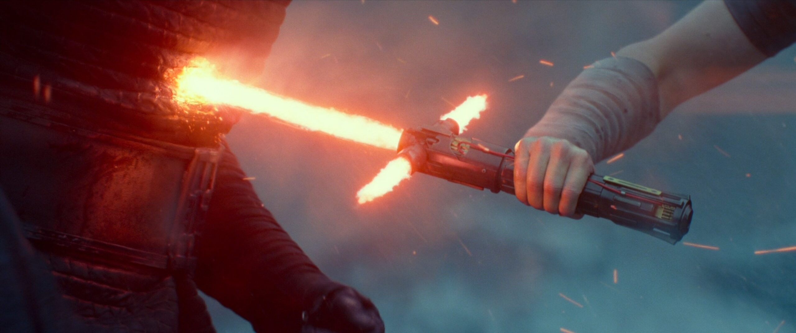 Kylo Ren nutzte dieses Lichtschwert in mehreren Duellen mit Rey, mit der er zusammen einen Zweiklang der Macht bildete. Nach seiner Abkehr von Kylo Ren und einer Vision von seinem Vater Han, warf Ben Solo das Lichtschwert in die Meere von Kef Bir.