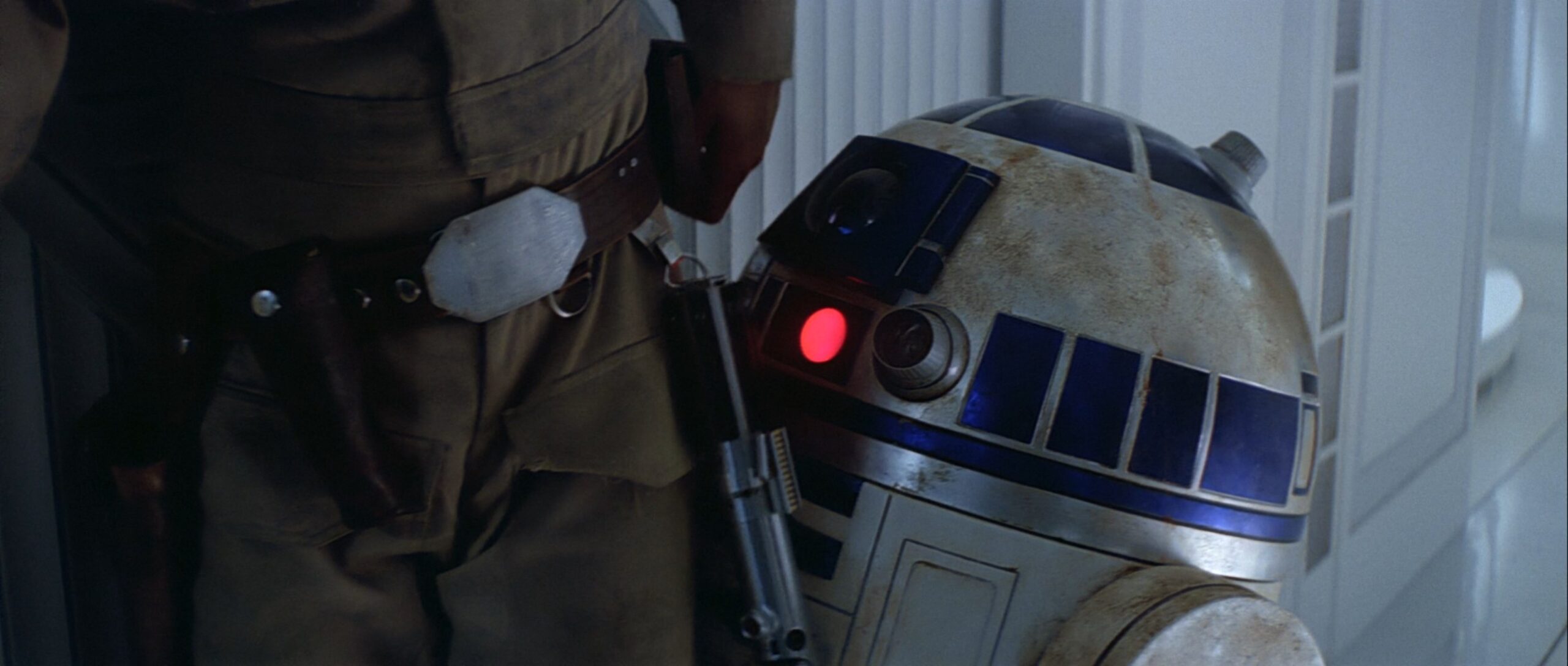 Die Grundform des Griffes ist weiter ein Kamera-Blitzstab der Firma Graflex („Graflex 3cell“)aus den 1940er Jahren, es wurde nur der Große Reflektor des Blitzes entfernt. Anstatt des in der ANH verwendeten Bubble Strip kommt ein Stück einer Platine in der Clamp zum Einsatz. Welches hier das Originalbauteil ist, kann nicht mehr zu 100% sicher gesagt werden, am wahrscheinlichten ist es aber ein Teil eine HP-44 Bus Type oder Otis Elevator board.
