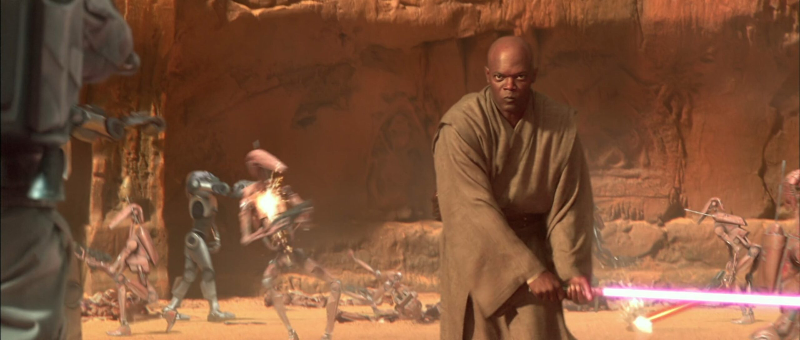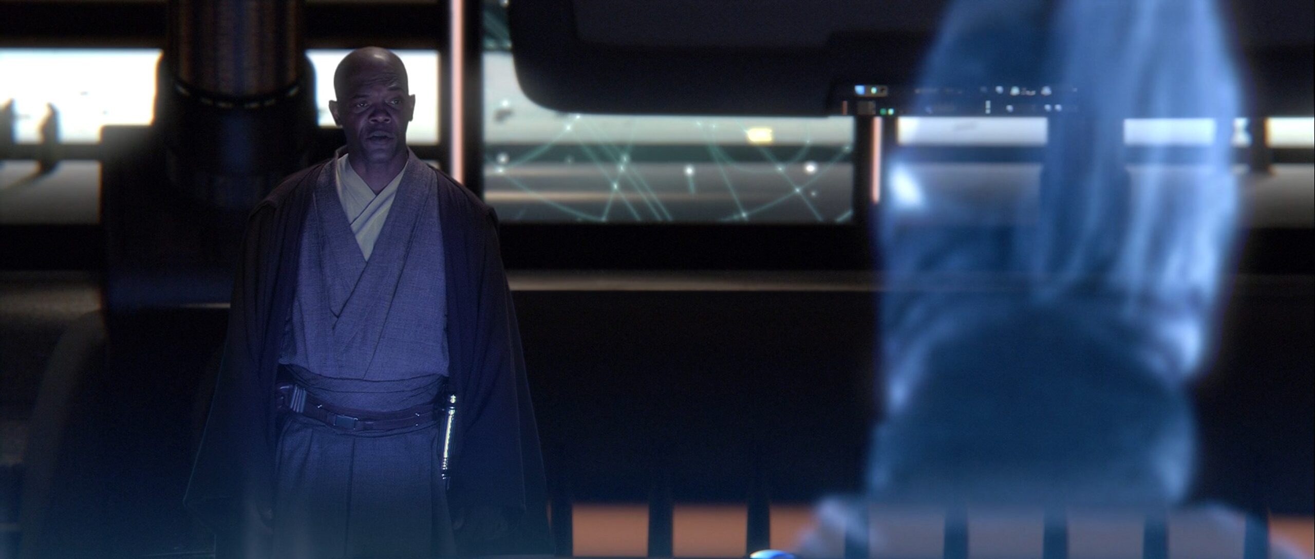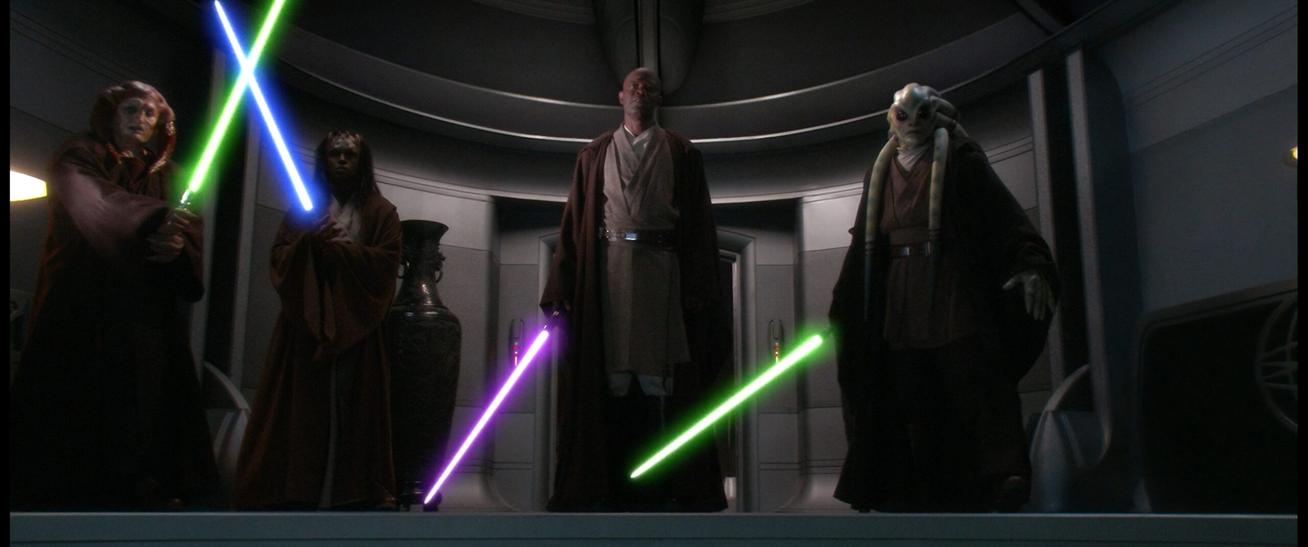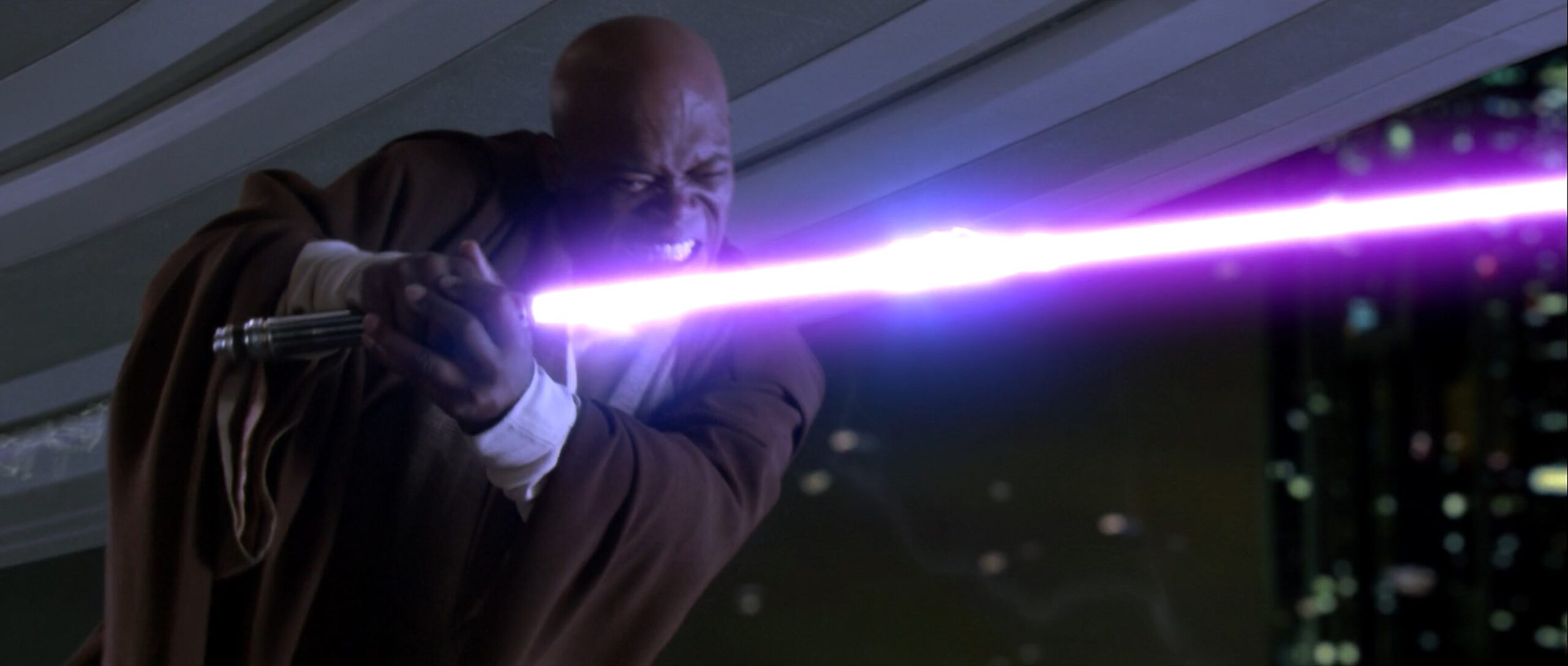 Eigentlich sollte das Lichtschwert entweder eine grüne oder blaue Klingenfarbe haben, George Lucas ließ sich jedoch von Samuel L. Jackson überreden ihm eine violette Klinge zu geben.