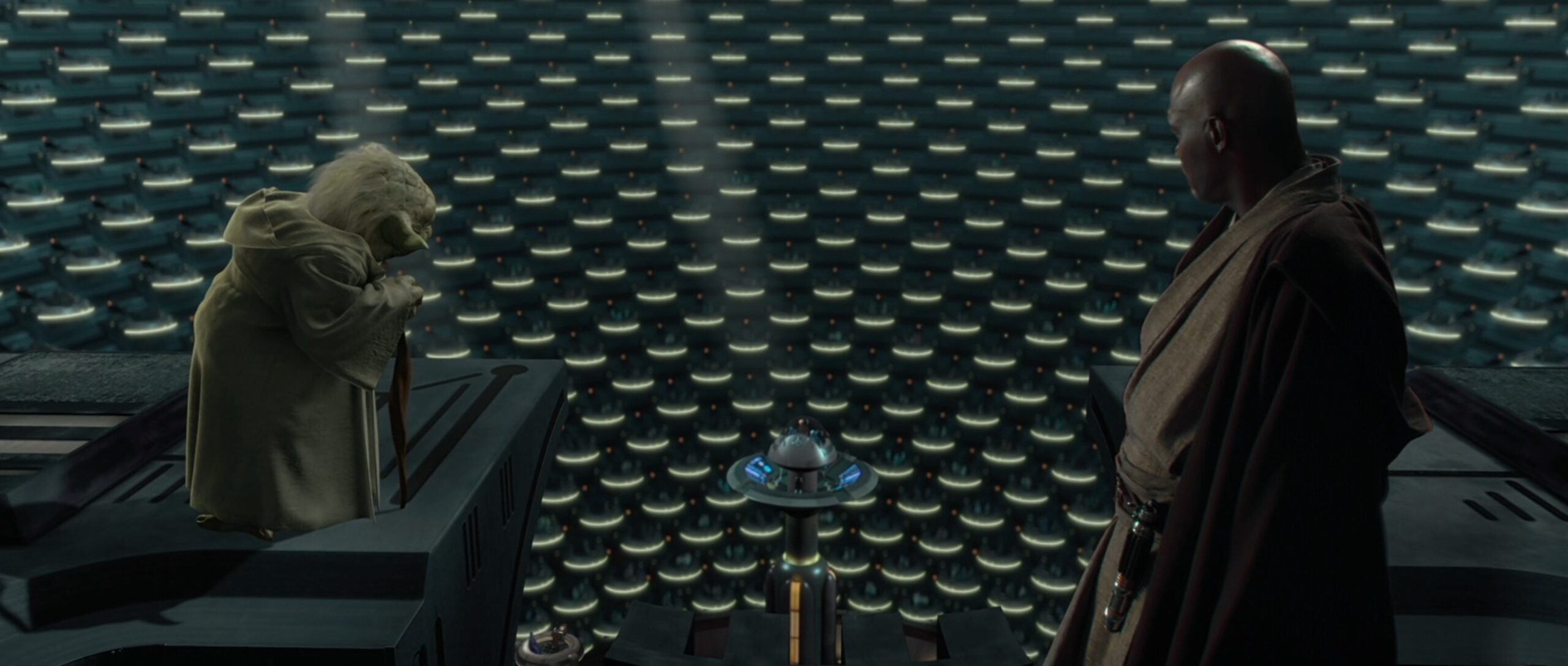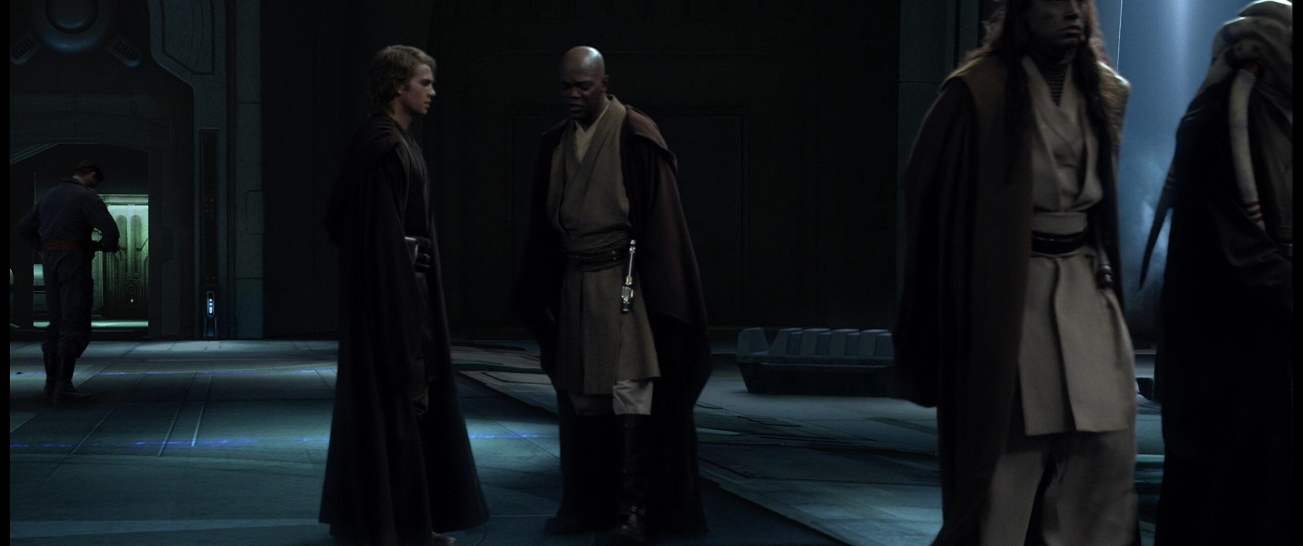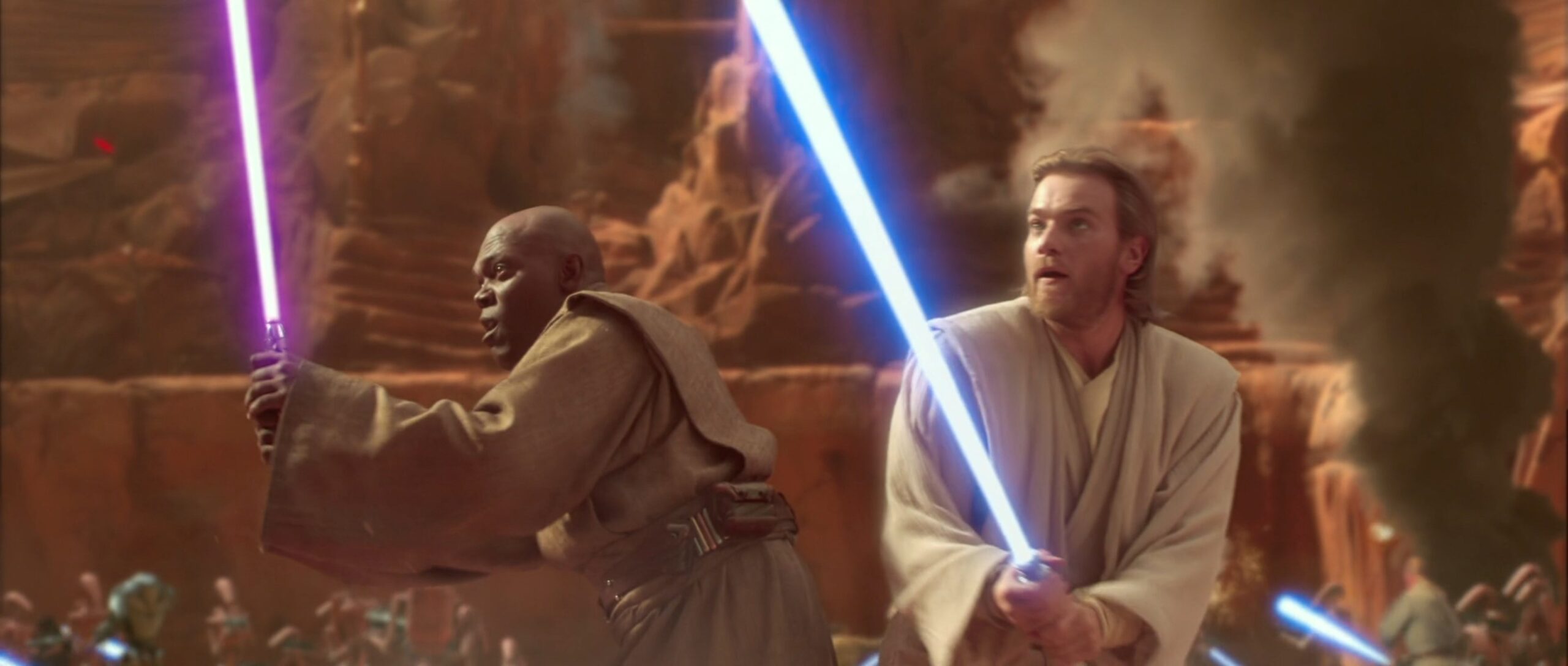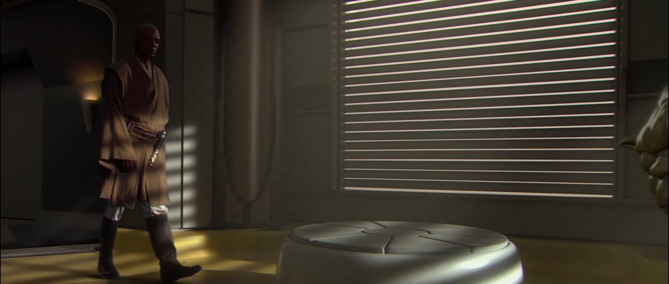 Eigentlich sollte das Lichtschwert entweder eine grüne oder blaue Klingenfarbe haben, George Lucas ließ sich jedoch von Samuel L. Jackson überreden ihm eine violette Klinge zu geben.