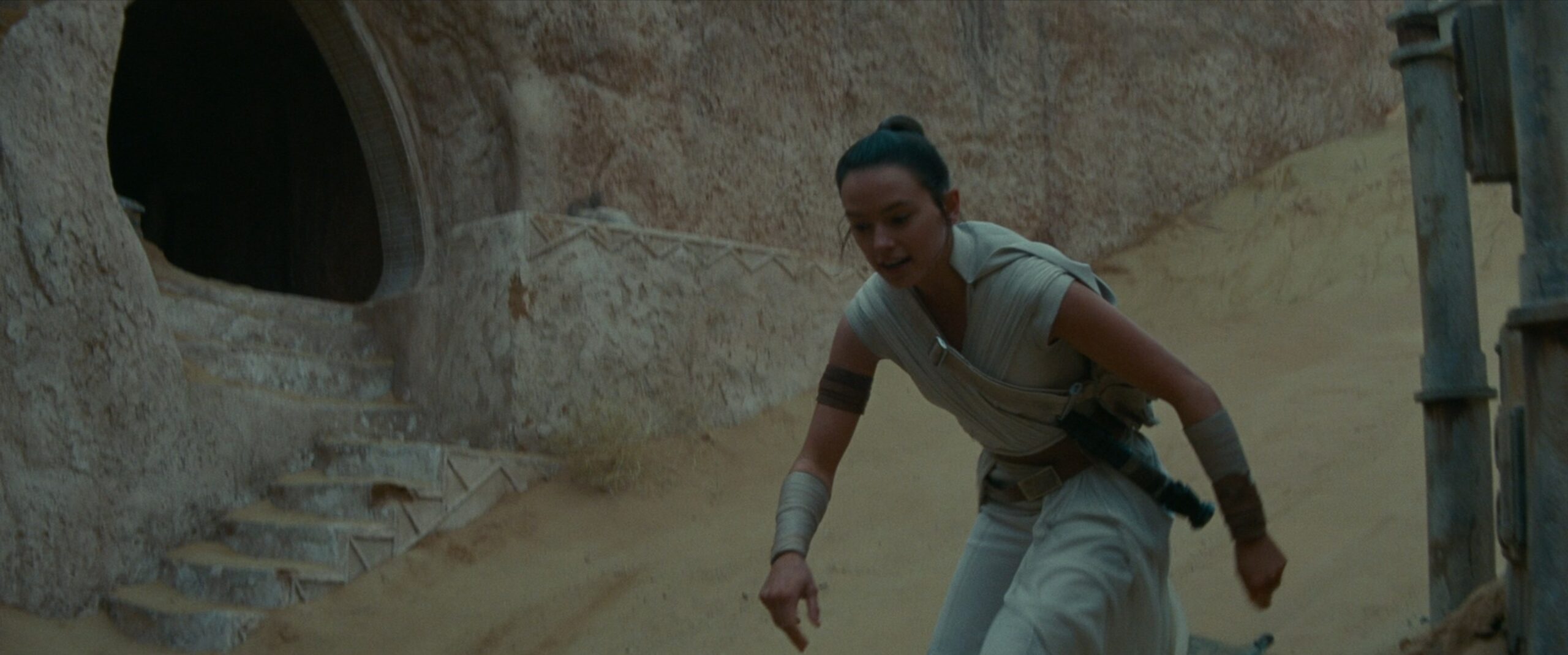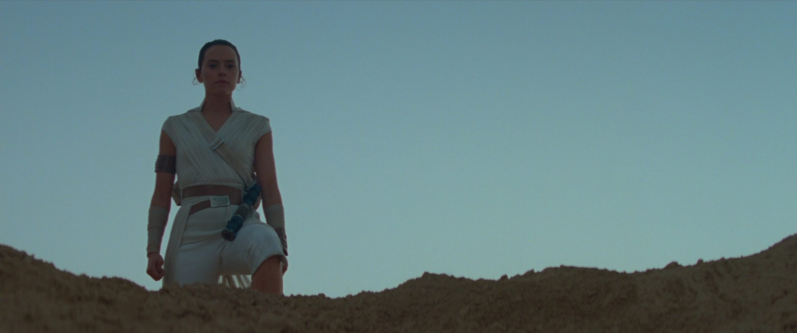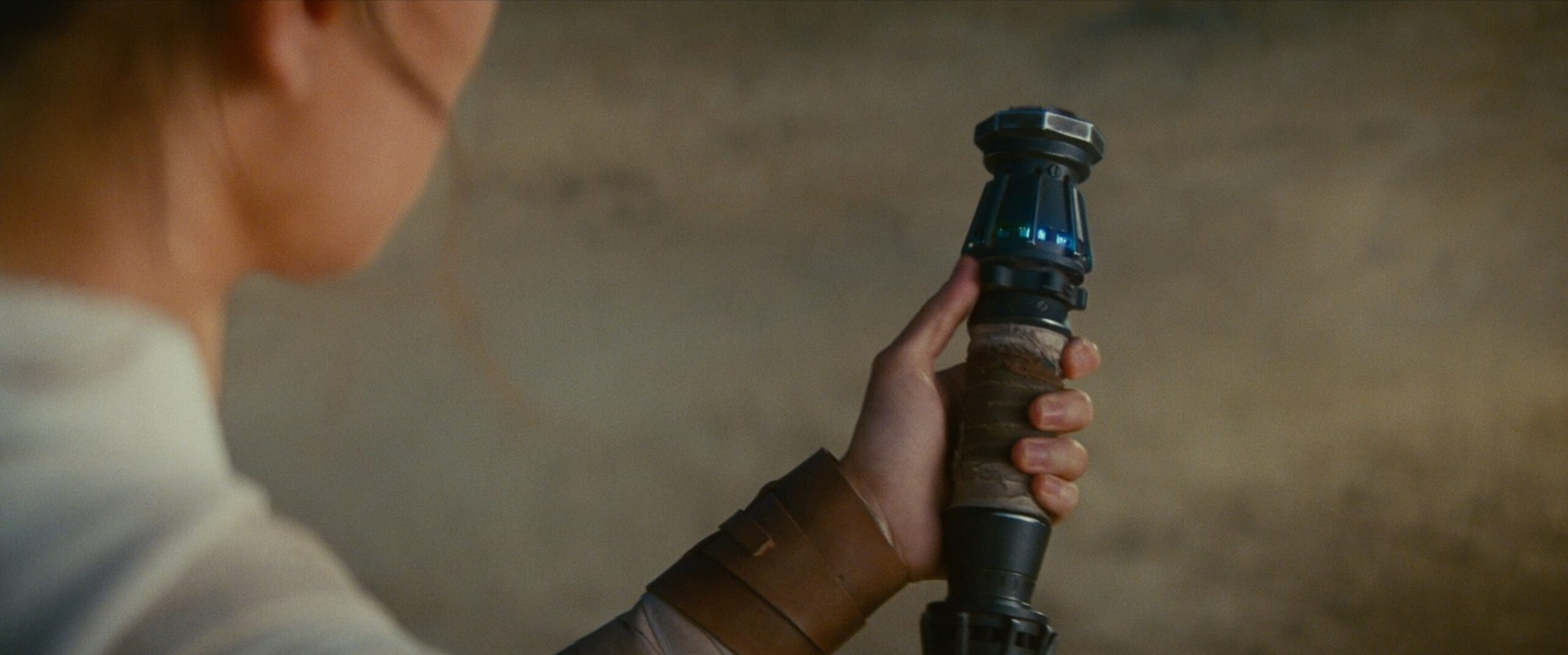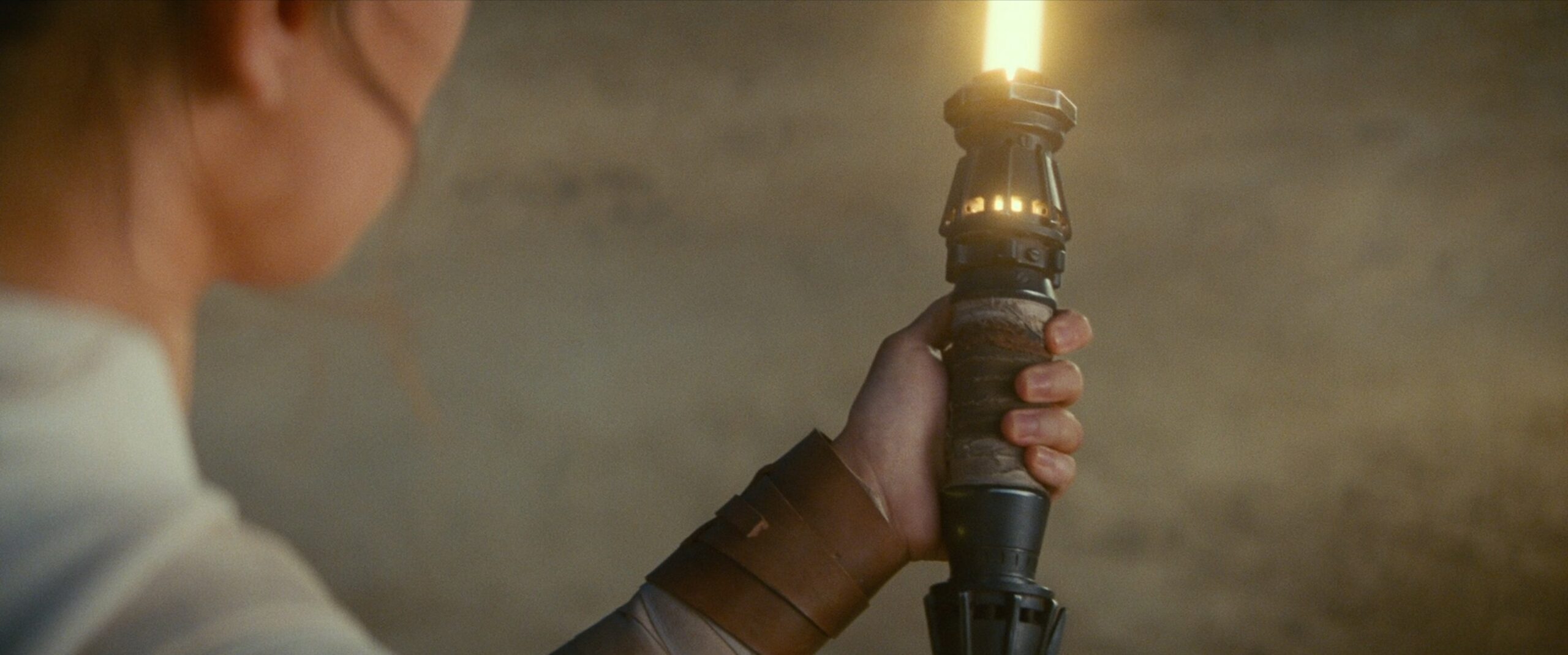Das dem Sieg über die Erste Ordnung baute Rey sich ein eigenes Lichtschwert. Dieses basierte aus Teilen aus ihrer Zeit als Schrottsammler auf Jakku und wurde aus Teilen ihres Kampf-Stabs gebaut. Wenn der Aktivator bedient wird, leuchtet der Emitter erst blau, dann grün auf, bevor die gelbe Klinge erscheint.