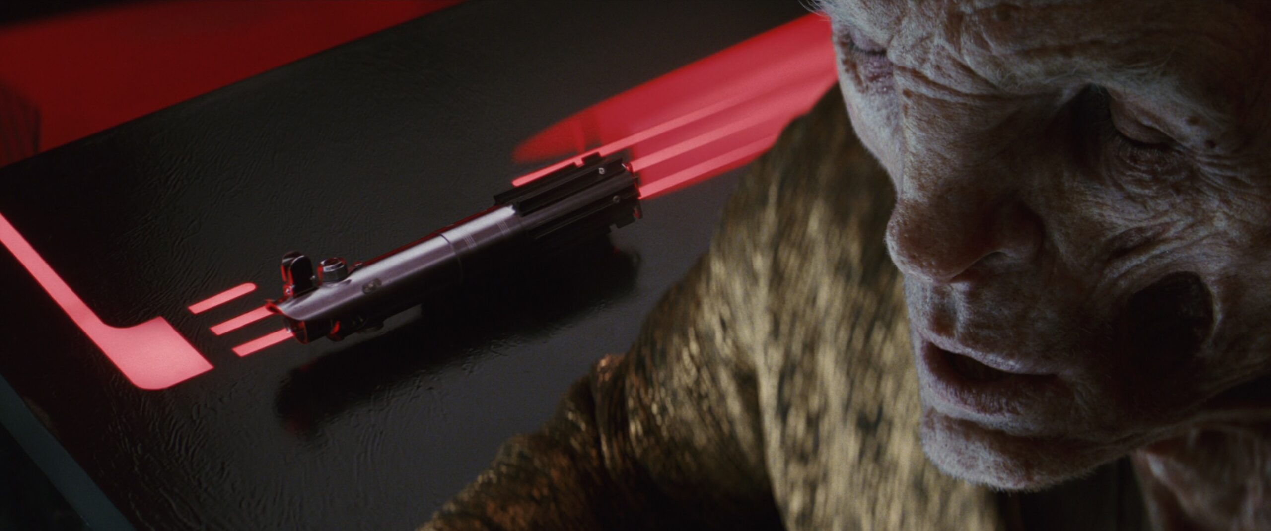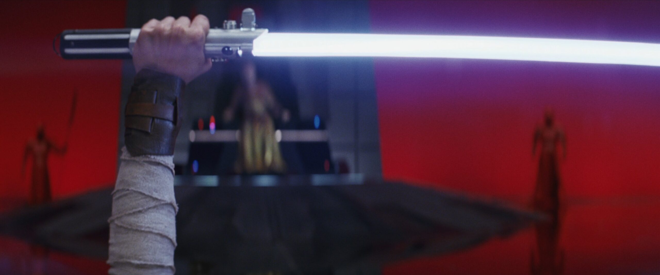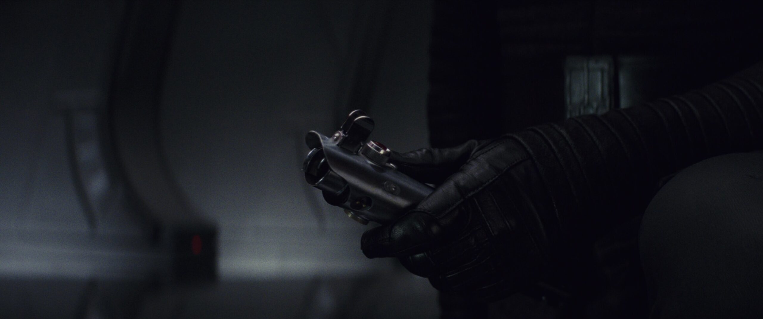 Finn und Rey nutzen dieses Lichtschwert im Duell mit Kylo Ren. Nach dem Versuch das Lichtschwert Luke Skywalker auf Ahch-To wiederzugeben, trainiert sie mit dem legendären Schwert, um ein Jedi zu werden. Im nächsten Duell mit Kylo Ren wird der Griff in der Mitte in zwei Teile zerteilt, doch die Geschichte des Griffes geht weiter.