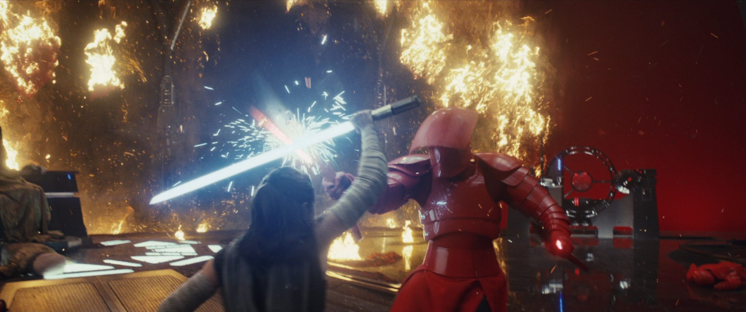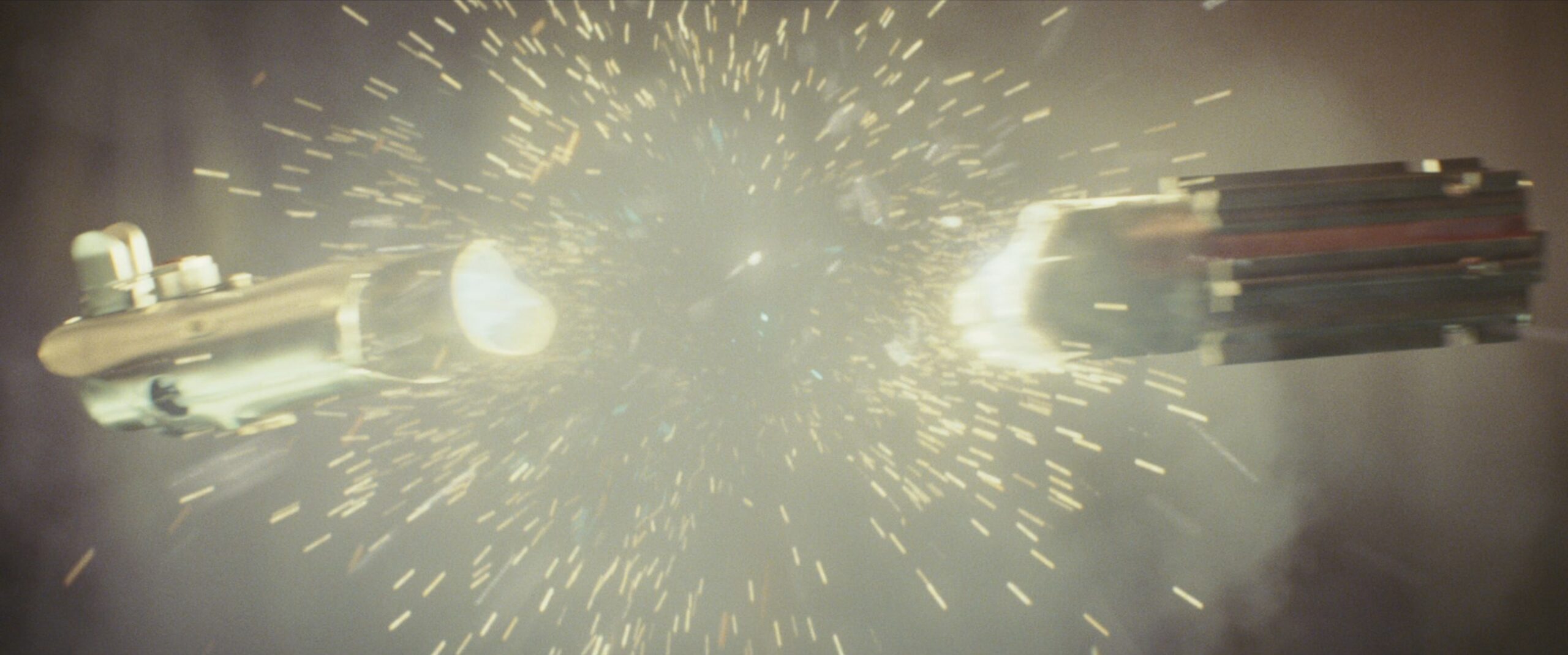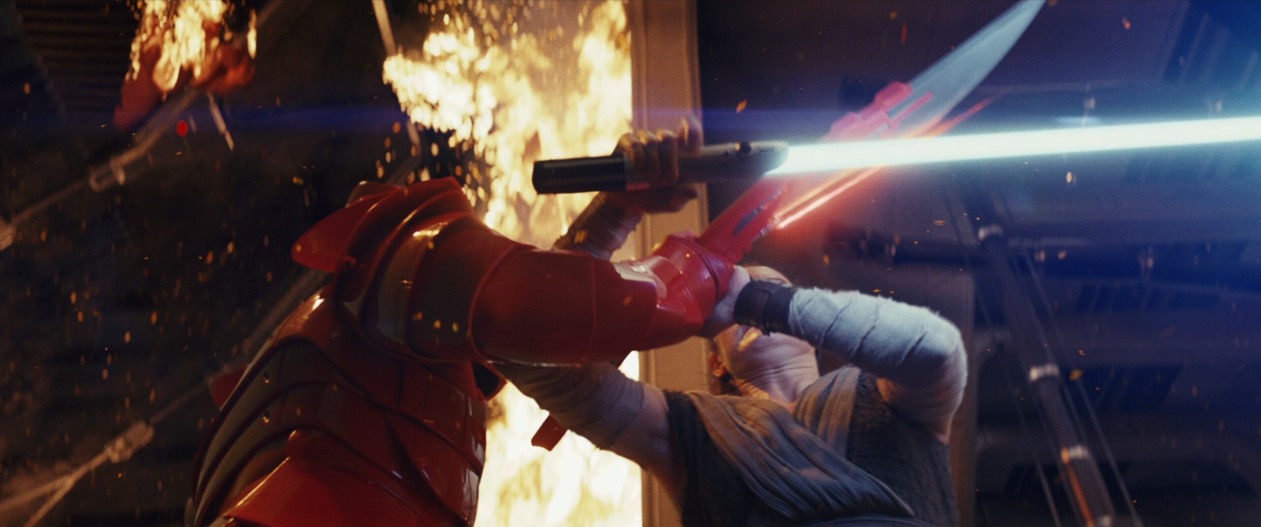 Finn und Rey nutzen dieses Lichtschwert im Duell mit Kylo Ren. Nach dem Versuch das Lichtschwert Luke Skywalker auf Ahch-To wiederzugeben, trainiert sie mit dem legendären Schwert, um ein Jedi zu werden. Im nächsten Duell mit Kylo Ren wird der Griff in der Mitte in zwei Teile zerteilt, doch die Geschichte des Griffes geht weiter.