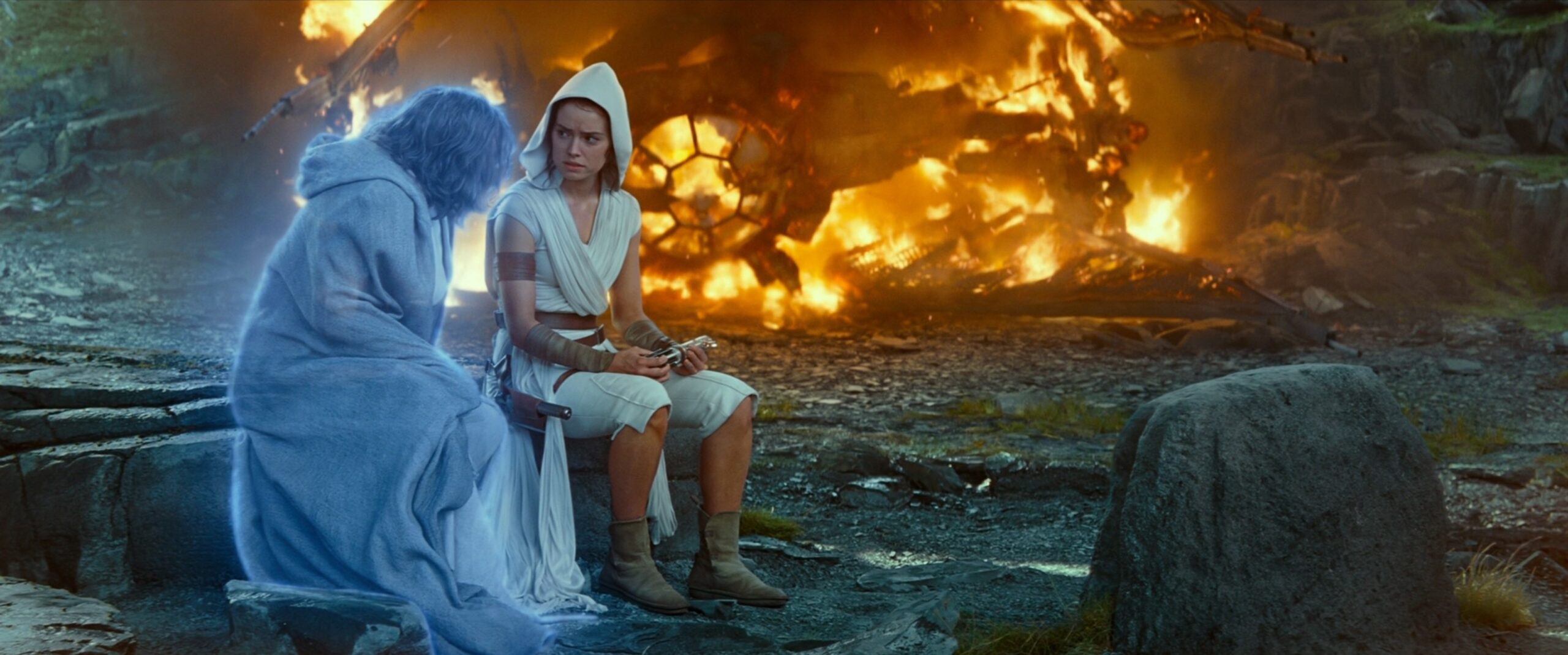 Zurück auf Tatooine begräbt Rey das Lichtschwert zusammen mit dem von Leia direkt neben Lars‘ Feuchtfarm.