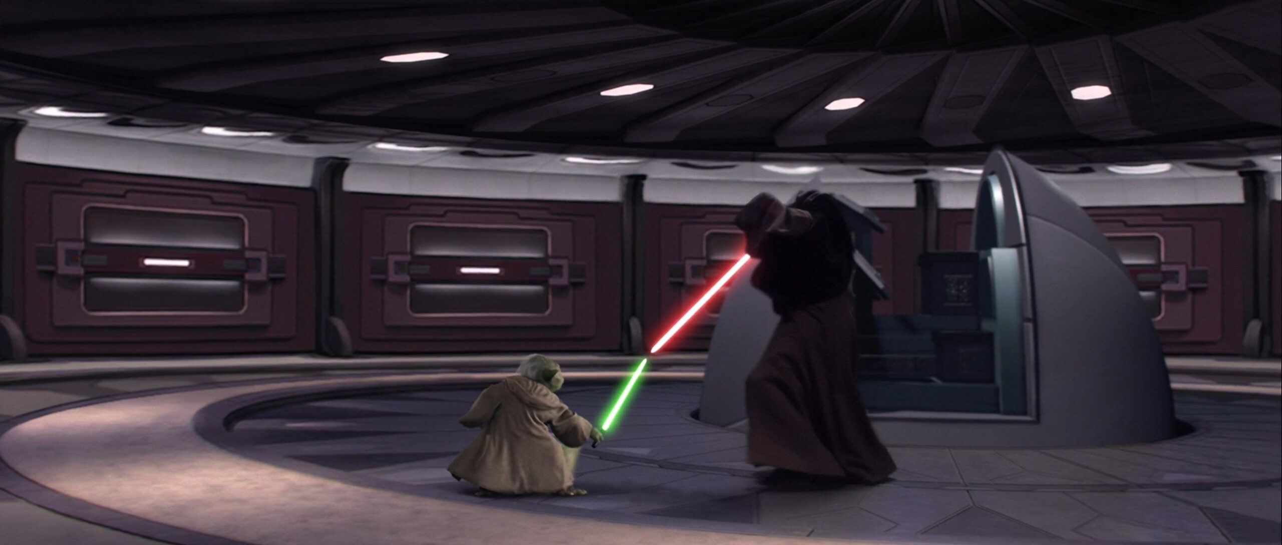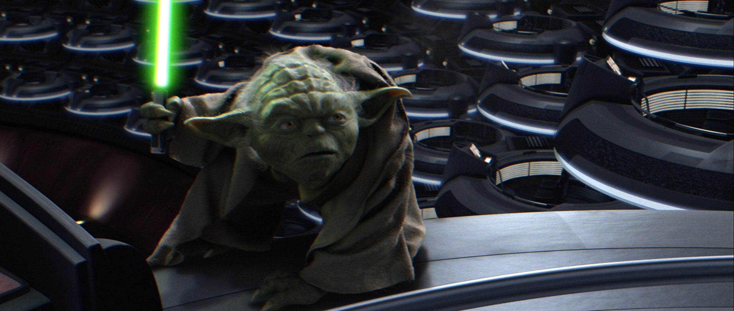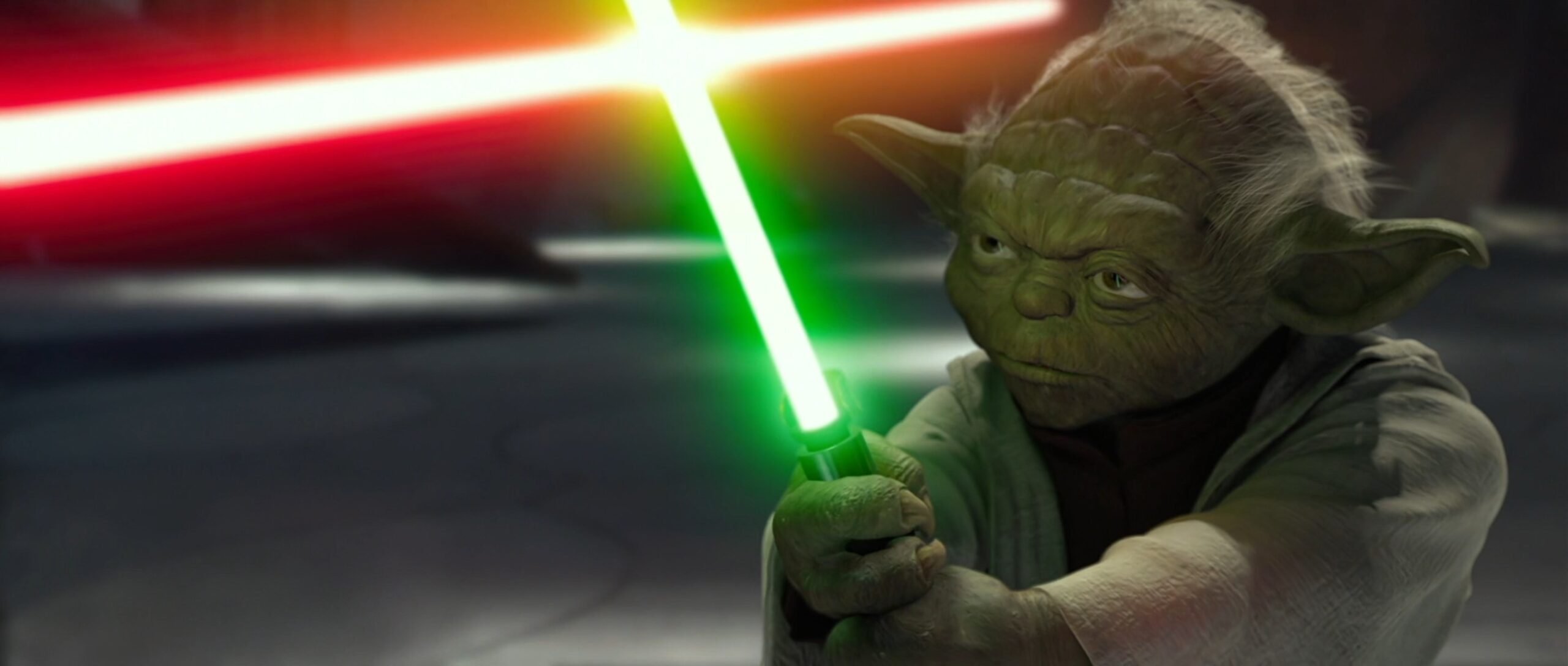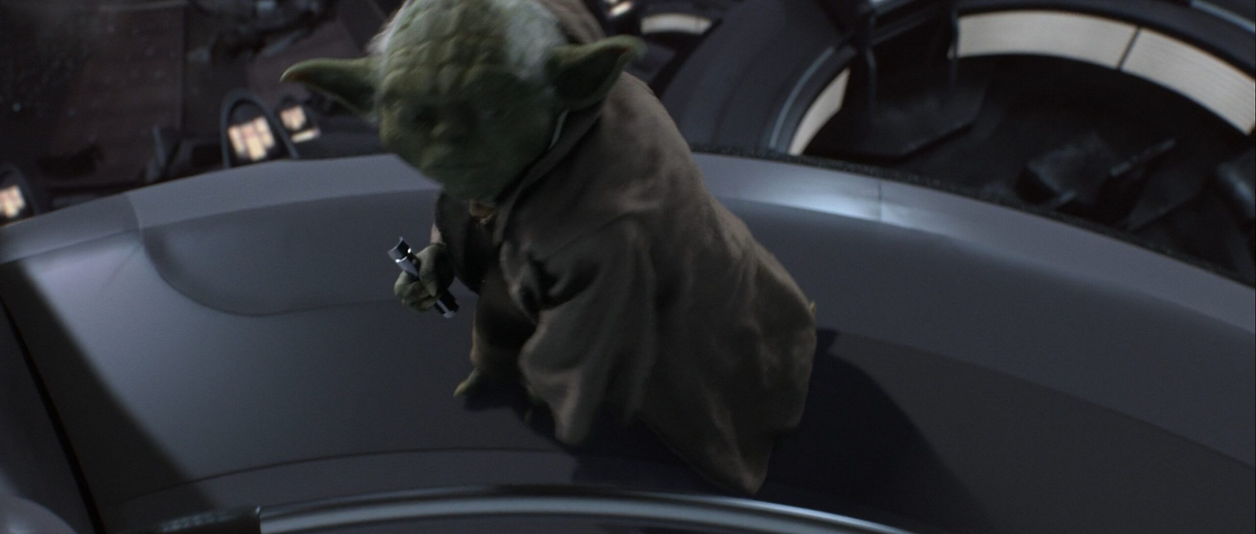 Das Lichtschwert des weisen Jedi-Meisters wurde gegen seinen der dunklen Seite verfallenen Schüler Count Dooku/Darth Tyranus eingesetzt und gegen Darth Sidious im finalen Duell in der großen Kammer des galaktischen Senats. Dort ging es im Duell mit dem Imperator verloren. Jahre später tauchte es wieder auf, jetzt in Besitzt von Luke Skywalker, der es seinem Schüler Grogu anbot.